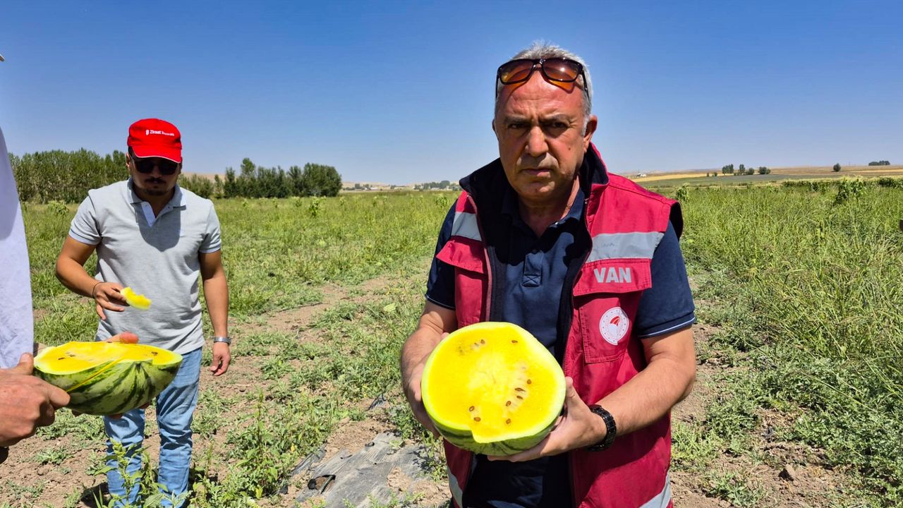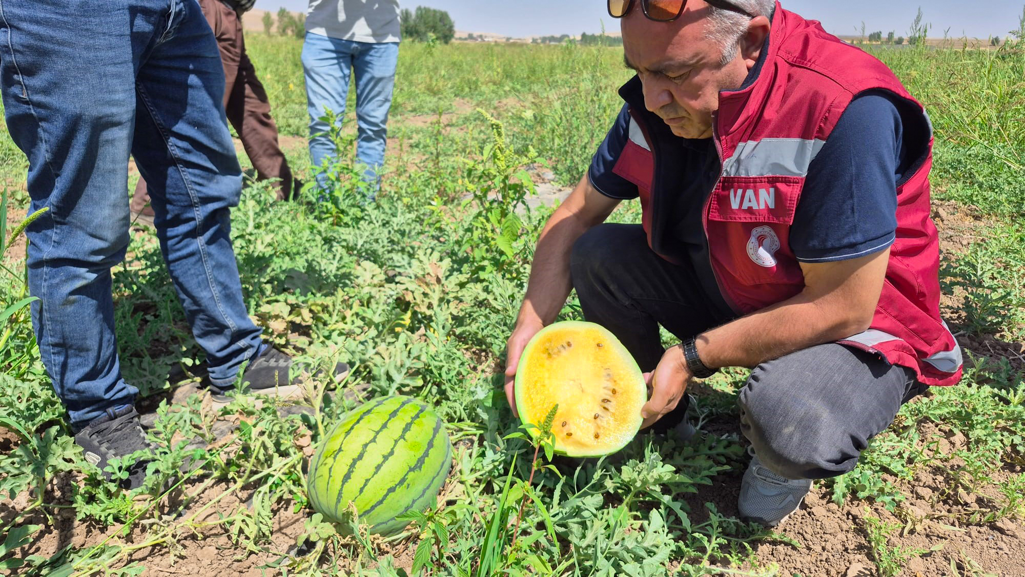 İlçeye bağlı Yumrutepe Mahallesinde ikamet eden Faysal Gül isimli çiftçi, yaklaşık 700 dönümlük alana sebze ekimi gerçekleştirdi. Domatesten patlıcana, biberden kavuna kadar birbirinden farklı sebze üretimi yapan Gül, 4 yıl önce deneme amaçlı İran'dan sarı karpuz tohumu getirdi. Eskiden Anadolu ve uzak doğuda yetiştirildiği bilinen sarı karpuzun zamanla yok olmaya başladığını belirten Gül, Tuşba İlçe Tarım ve Orman Müdürlüğü'nün de teknik destekleriyle karpuz çekirdeklerinden tohum elde ederek fide haline getirip üretimini gerçekleştirdiğini söyledi. 5 dönümlük bir alana sarı karpuz ekimini yaptığını ifade eden Gül, "Dışı diğer karpuzlar gibi yeşil olan ancak içi sarı olan bu karpuz, sulu ve hafif mayhoş tadında olması, çoğu kişinin ananas tadına benzettiği için ananas karpuz diye de adlandırılıyor. 4 yıl önce tohumu İran'dan getirdim. Her sene bir iki sıra ekiyordum ancak rekolte yoktu, verim azdı. Bu sene değişik bir yöntem denedim. Çekirdeklerini fide yaptım. Fide yaptıktan sonra biraz daha rekoltesi yükseldi. Şu anda 5 dönüme yakın ektim. Bundan sonra Allah´ın izniyle artık onu yükseltmeyi düşünüyorum" dedi.