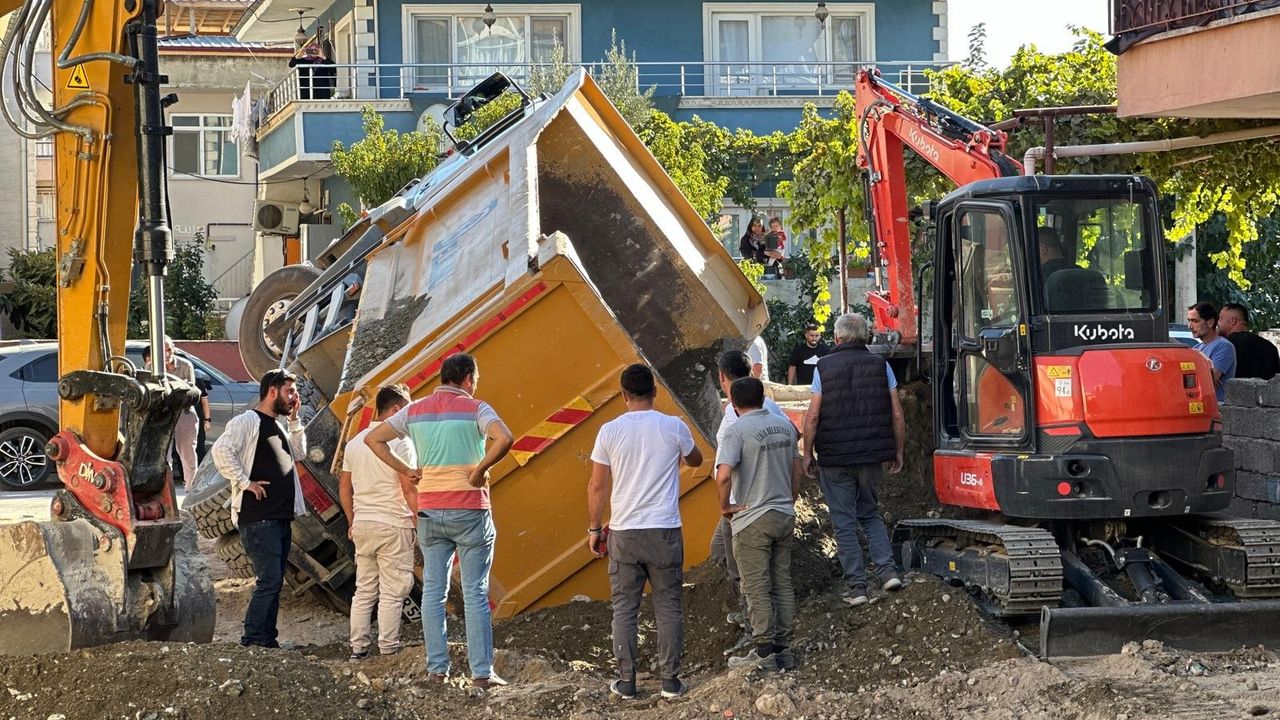 Olay, Mustafa Kemal Paşa Mahallesi Atatürk Yolu Sokak’ta meydana geldi. Bölgeye, kazılan temele kum getiren kamyon, zeminin çökmesi sonucu foseptiğe düştü.