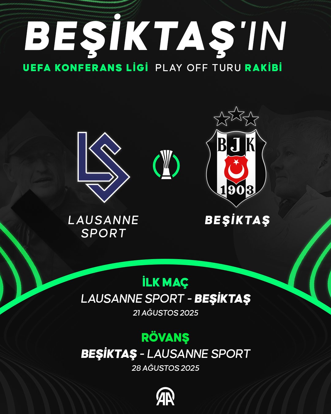 Beşiktaş, UEFA Konferans Ligi play-off turunda Lausanne ile ilk maçını deplasmanda oynayacak. Lausanne - Beşiktaş maçı 21 Ağustos Perşembe günü saat 21:15'te oynanacak. Stade De La Tuiliere Stadyumu'nda oynanacak maç HT Spor’dan canlı olarak yayınlanacak.