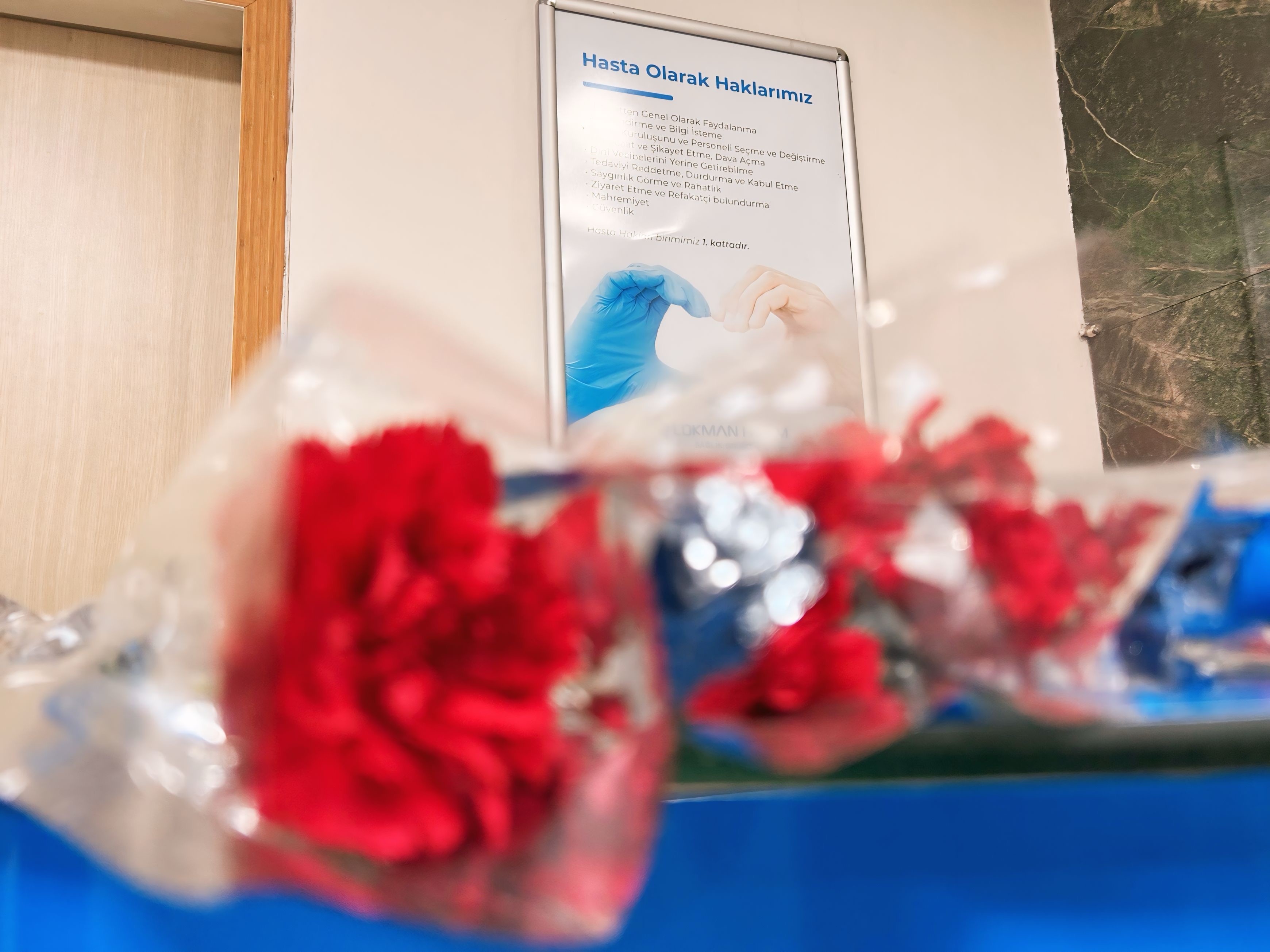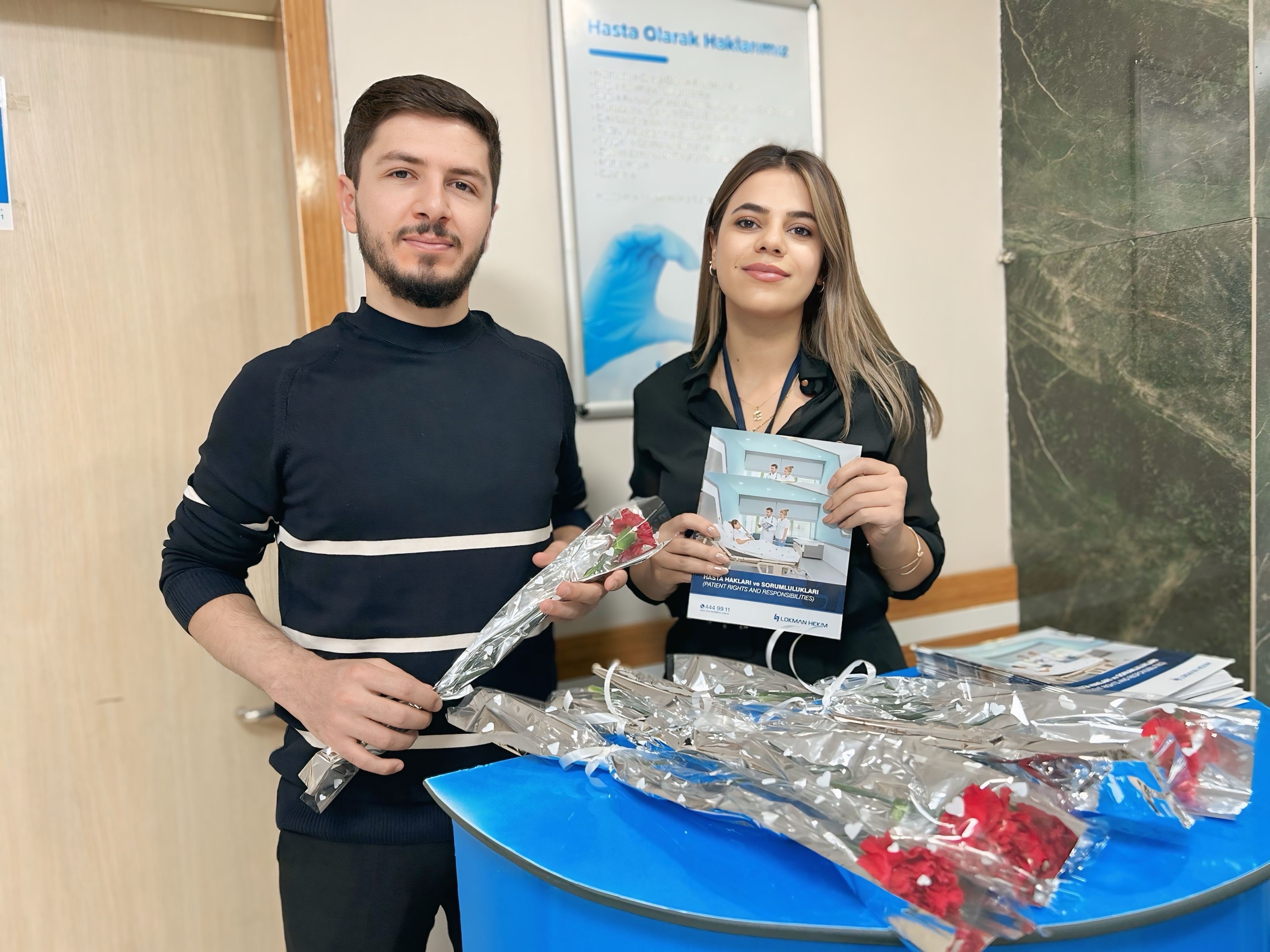 Hasta odaklı sağlık hizmeti anlayışıyla faaliyetlerini sürdüren Lokman Hekim Van Hastanelerinde düzenlenen etkinlikte, Başhekim Doç. Dr. Veli Avcı ile Hasta Hakları Sorumlusu Hülya Eylem Durmaz, hastaları ziyaret etti. Ziyaretlerde Doç. Dr. Avcı, "Hasta Hakları Kanunu" kapsamında hasta haklarının güvence altına alınmasına yönelik bilgiler verirken, Hülya Eylem Durmaz ise hastalara karanfil dağıtarak günlerini kutladı.