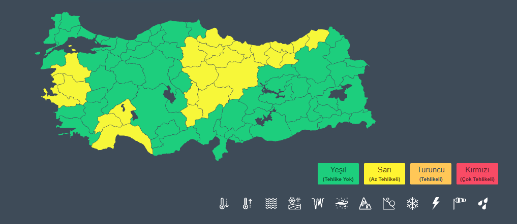 Meteoroloji tarafından İzmir, Manisa, Balıkesir, Amasya, Antalya, Artvin, Burdur, Çorum, Giresun, Gümüşhane, Isparta, Kayseri, Nevşehir, Niğde, Ordu, Samsun, Sivas, Rize, Tokat, Trabzon, Yozgat ve Bayburt için sarı kodlu uyarı verdi.