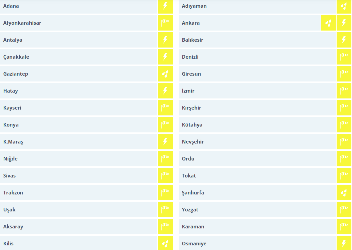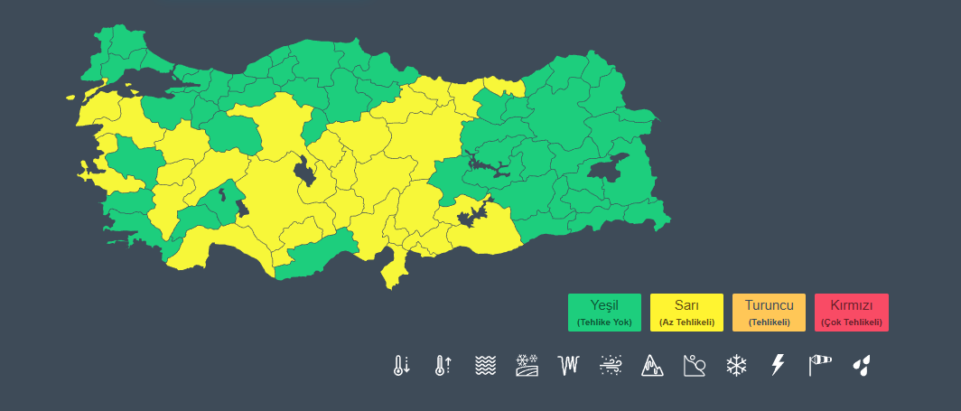 30 İL İÇİN SARI KODLU UYARI
