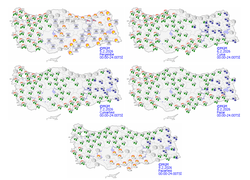 Meteoroloji Genel Müdürlüğü olarak yapılan değerlendirmelere göre: Ülkemiz genelinin parçalı ve çok bulutlu, Marmara, Ege, Batı ve Orta Akdeniz, İç Anadolu'nun batısı ile Batı Karadeniz'in (Sinop hariç) yağmur ve sağanak, Kıyı Ege ile Batı Akdeniz kıyılarının yer yer gök gürültülü sağanak yağışlı geçeceği tahmin ediliyor. Yağışların, Kıyı Ege, Batı Akdeniz ile Edirne, Çanakkale, Balıkesir, Manisa ve Denizli çevrelerinde kuvvetli, Kıyı Ege ile Çanakkale çevrelerinde yer yer çok kuvvetli olması bekleniyor.