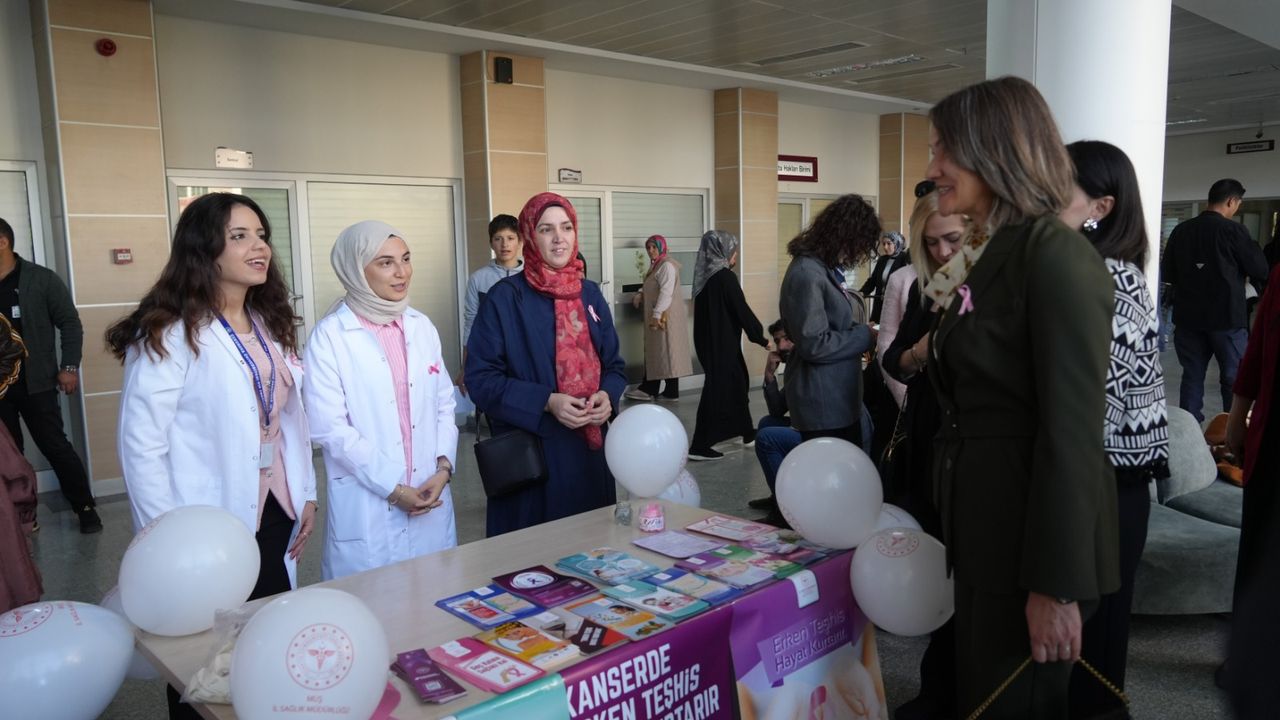 Muş Devlet Hastanesi’nde açılan stantta vatandaşlara meme kanserinde erken teşhisin önemi anlatılarak bilgilendirme broşürleri dağıtıldı. Etkinlik kapsamında kansere yakalanan kişilerin fotoğraflarından oluşan resim sergisi de büyük ilgi gördü. Programa katılan Muş Valisi Avni Çakır’ın eşi Bahar Çakır ve İl Sağlık Müdürü Dr. Erol Emre Ömür, stantta görevli sağlık personelinden bilgi alarak sergiyi gezdi. Daha sonra ayaktan kemoterapi ünitesindeki hastaları ziyaret eden Çakır ve Ömür, geçmiş olsun dileklerinde bulundu.