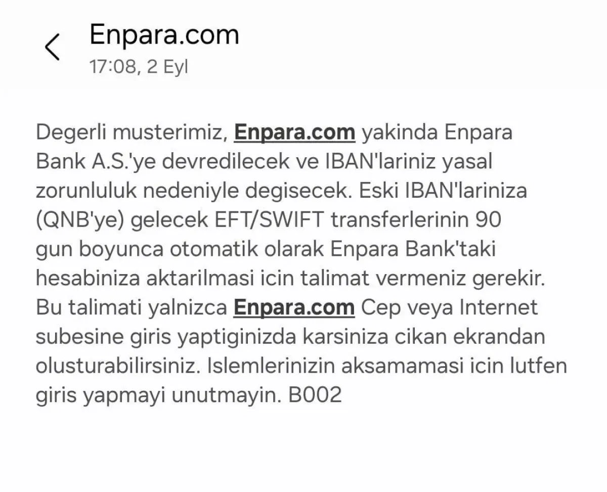 Banka, geçiş sürecinin başlamasına kısa bir süre kala müşterilerini bilgilendirmek için SMS gönderdi. Gönderilen mesajda, IBAN değişikliğinin yasal bir zorunluluk olduğu vurgulandı.