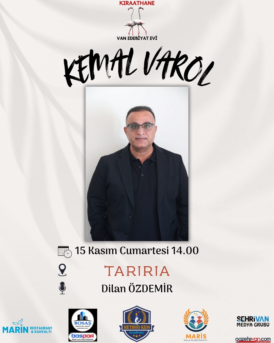 Kıraathane Van Edebiyat Evi, çağdaş edebiyatın önemli isimlerinden Kemal Varol’u Van’da ağırlayacak. 15 Kasım Cumartesi günü saat 14.00’te Tariria Kültür, Sanat ve Gastronomi Merkezi’nde gerçekleştirilecek etkinlikte Varol, edebiyat serüvenini ve son romanını okurlarıyla paylaşacak. Programın moderatörlüğünü Dilan Özdemir üstlenecek.