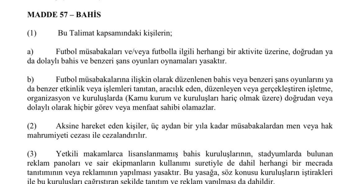 TFF talimatları uyarınca 3 yıla kadar ceza gerektirebilen ilgili madde ise şöyle: