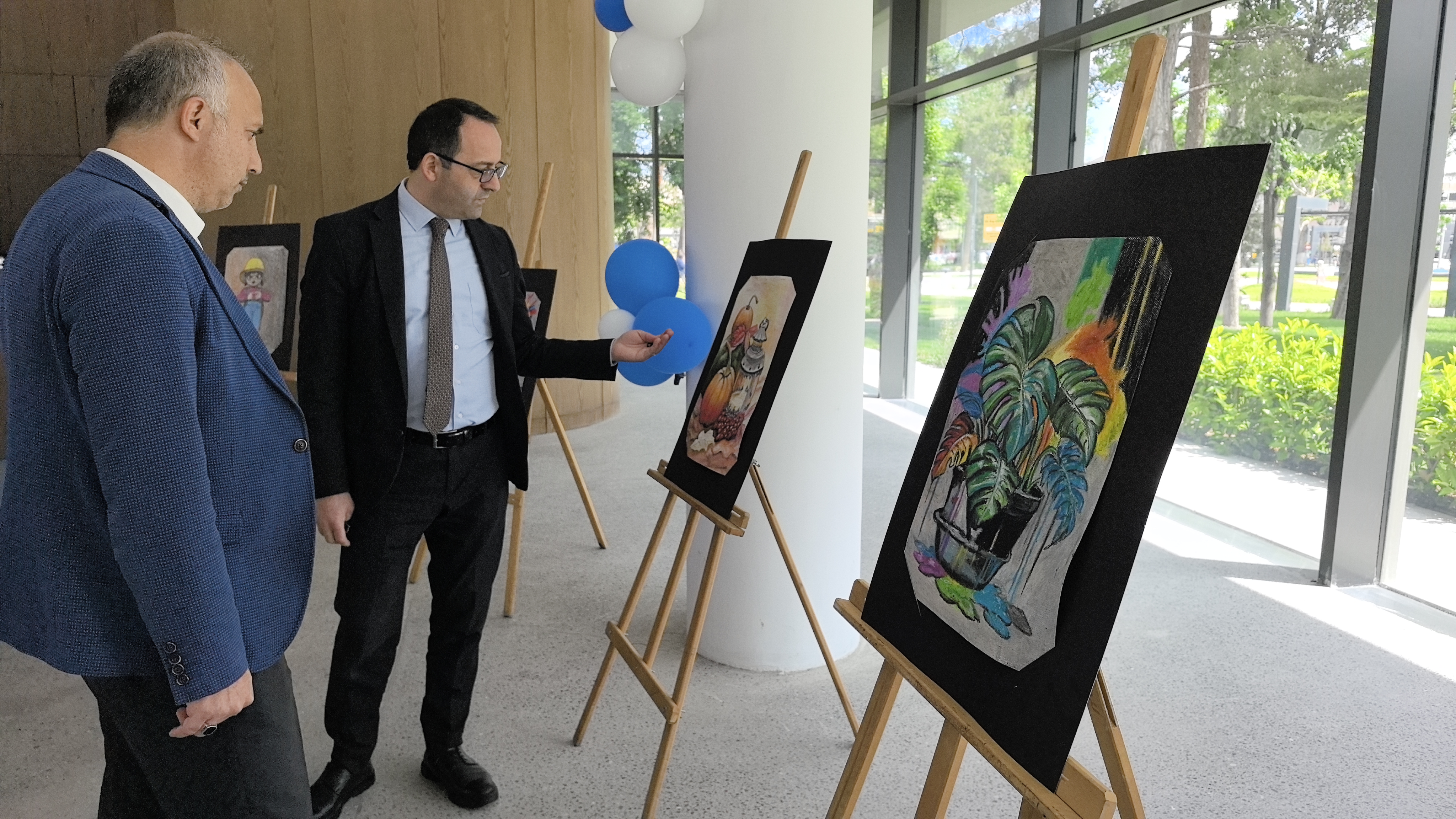 Selçuk Yahşi Ortaokulu öğrencisi Ali Doğan da “Bugün burada çizdiğim resimleri gösterme fırsatı bulduğum için çok mutluyum. Resim yapmak benim için bir öğün gibi. Renklerle oynamayı ve hayal ettiklerimi kağıda çizmeyi çok seviyorum. Bu sergideki her resim benim duygularımı, düşüncelerimi anlatıyor. Belki bazen kelimelerle anlatmak zor oluyor. Resimlerle anlatmak daha kolay. Buraya geldiğiniz ve resimlerimi gördüğünüz için hepinize çok teşekkür ederim. Beni destekleyen öğretmenlerime, anneme ve arkadaşlarıma da çok teşekkür ederim” diye konuştu
