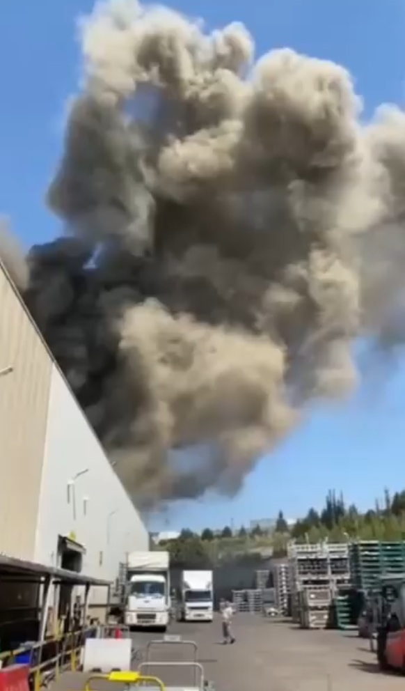 Fabrikadan yükselen siyah dumanlar ilçenin birçok noktasından görülürken, ekiplerin alevlere müdahalesi sürüyor.