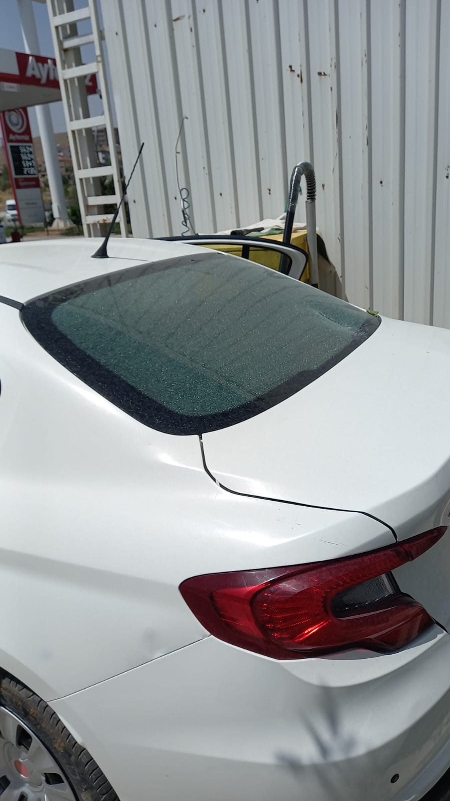 Alınan bilgilere göre olay, öğle saatlerinde İpekyolu Caddesi üzerinde bulunan bir akaryakıt istasyonunun yanında meydana geldi. Sürücüsünün kimliği öğrenilemeyen bir otomobil, yıkama esnasında şiddetlenen rüzgarın hedefi oldu. Yakınlardaki bir iş yerinin çatısından aniden fırlayan sac levhalar, aracın üzerine düşerek arka camının kırılmasına neden oldu.
