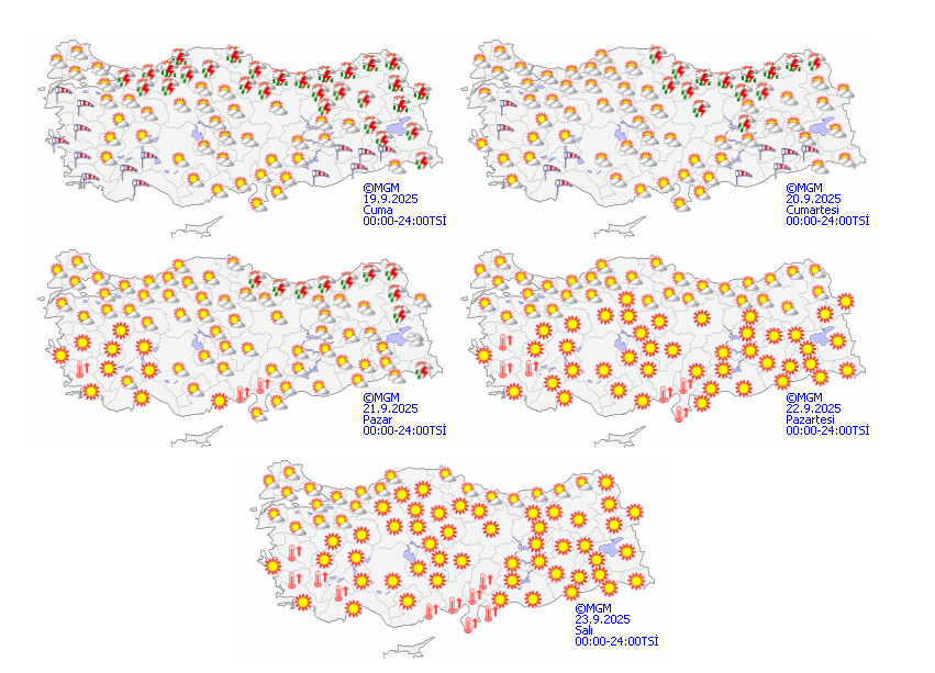 Parçalı bulutlu, kuzey ve doğusunun aralıklı sağanak ve gök gürültülü sağanak yağışlı geçeceği tahmin ediliyor. Yağışların, bölgenin kuzeydoğusunda yer yer kuvvetli olması bekleniyor. Rüzgarın, bölgenin, batısında kuzeyli yönlerden, güneydoğusunda güneyli yönlerden yer yer kuvvetli (40-60 km/sa) eseceği tahmin ediliyor.