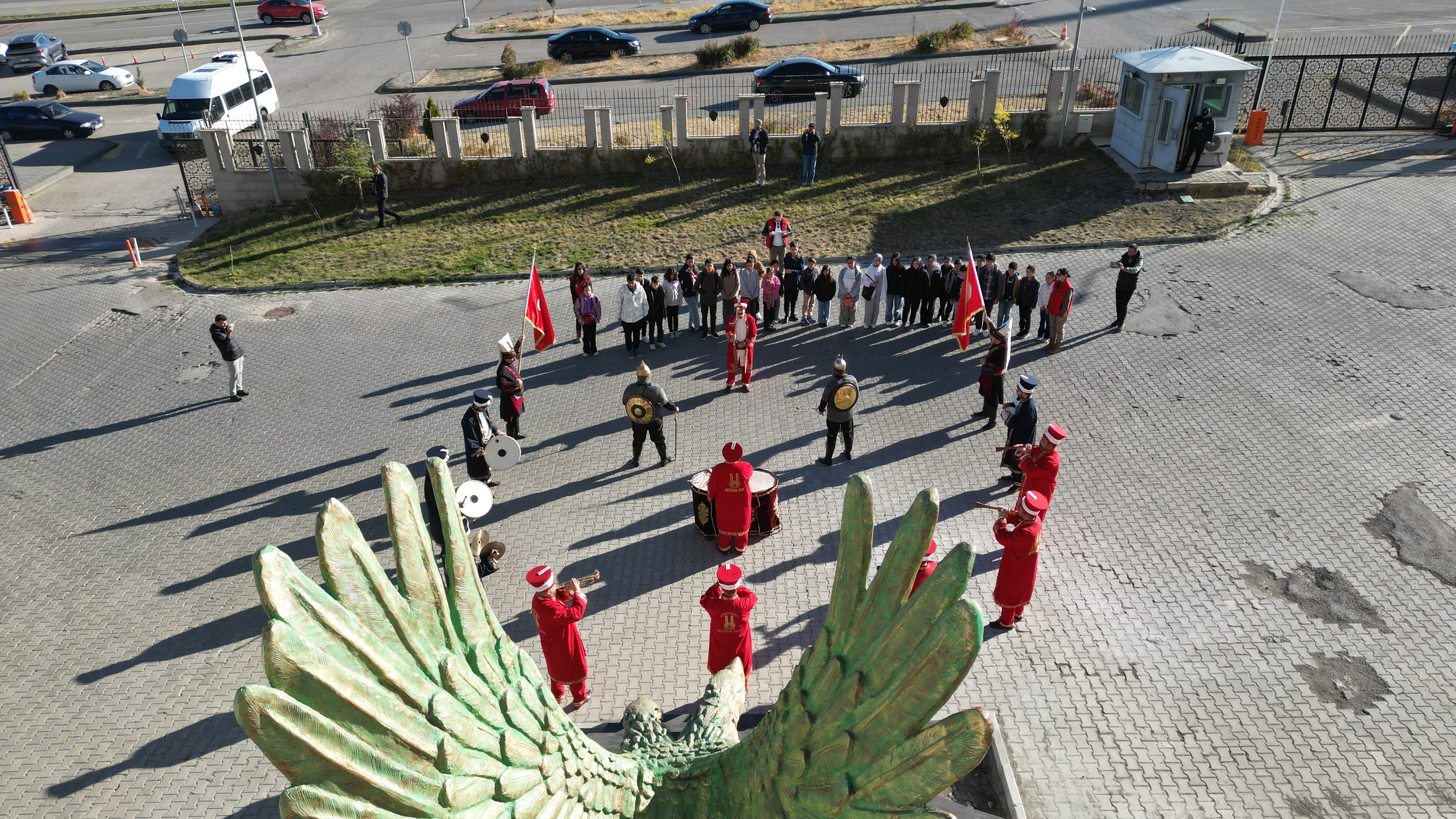 Gezi kapsamında, İl Emniyet Müdürlüğü binası önünde mehter takımıyla karşılanan çocuklar, polislerle Palandöken Dağı'nda kahvaltı yaptı.