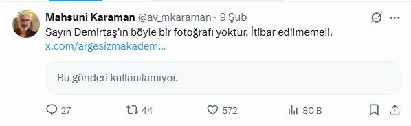 Karaman, X (eski adıyla Twitter) hesabından yaptığı paylaşımda söz konusu fotoğrafın gerçeği yansıtmadığını ifade etti. Karaman açıklamasında, “Sayın Demirtaş’ın böyle bir fotoğrafı yoktur. İtibar edilmemeli.” ifadelerine yer verdi.
