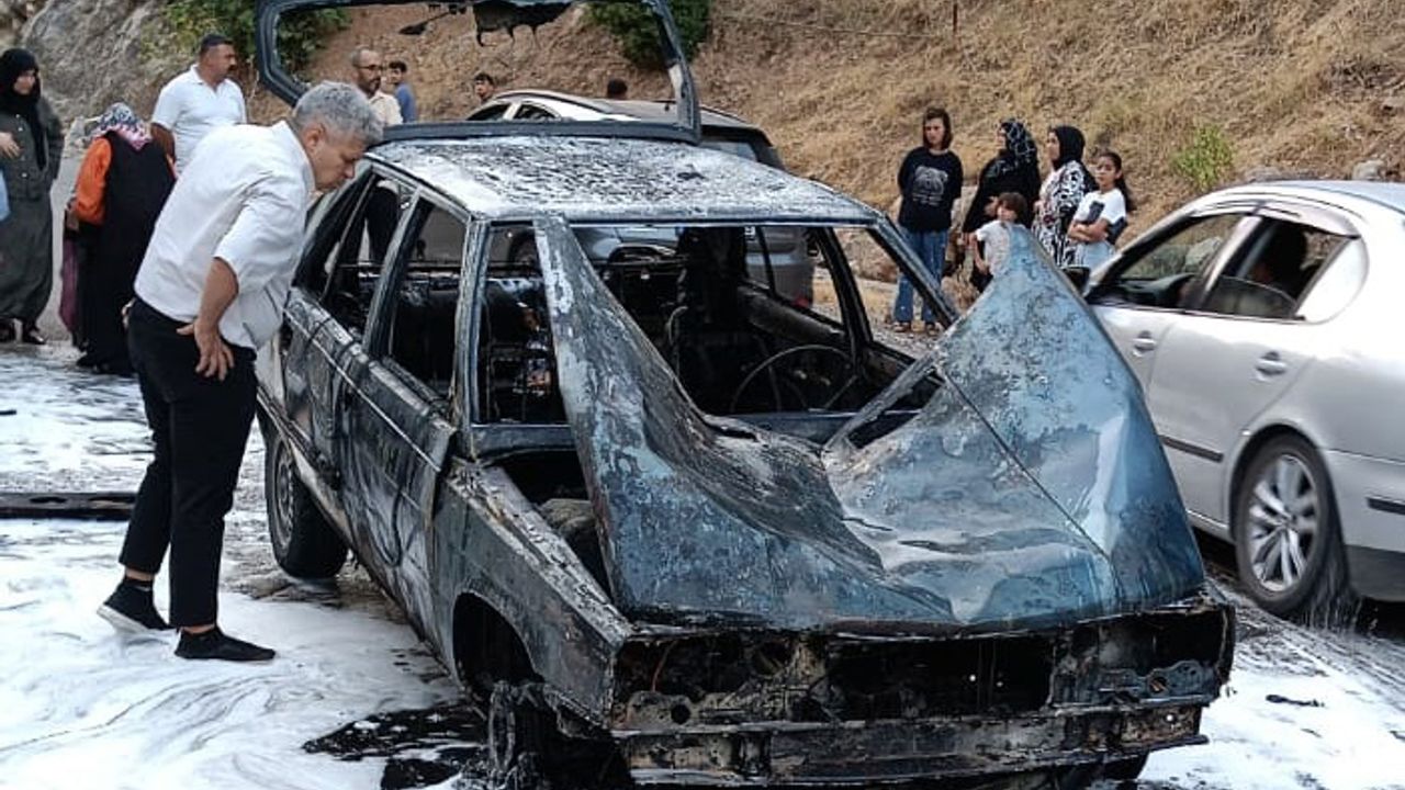 İhbarla sevk edilen itfaiye ekipleri alevleri söndürürken, otomobil kullanılamaz hale geldi. Olay ile ilgili inceleme başlatıldı.