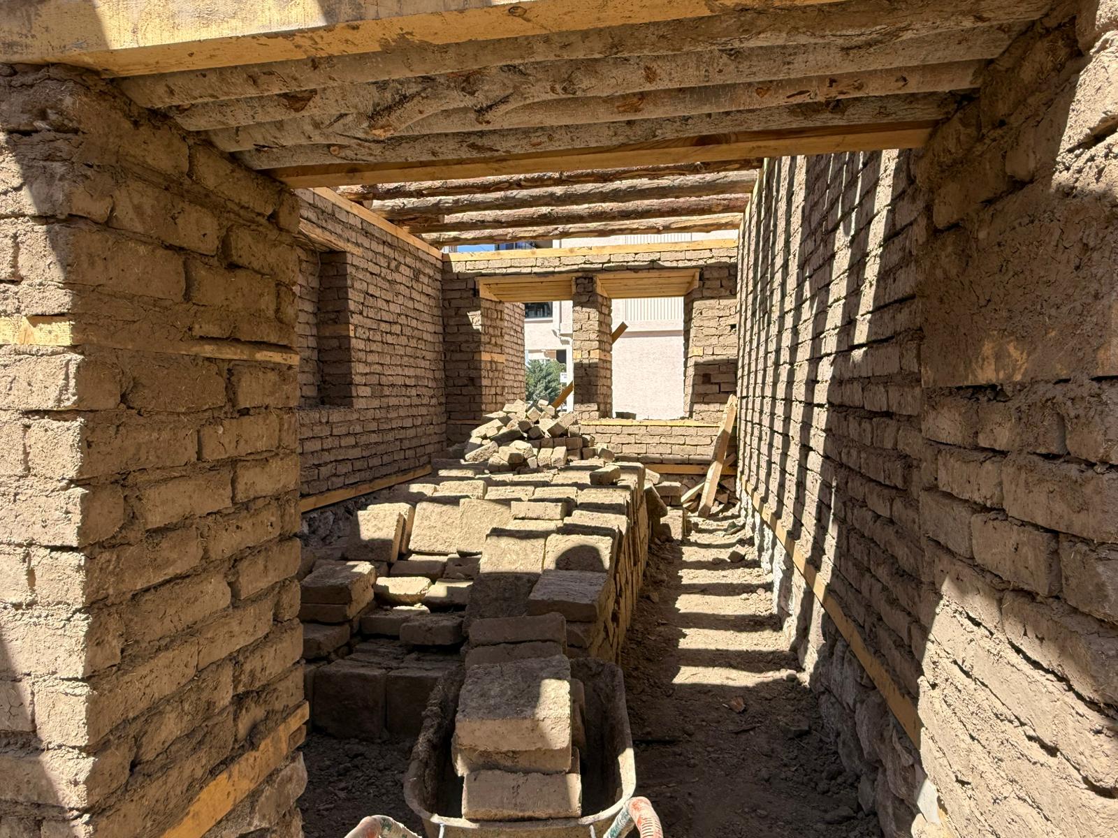 Restore çalışmasıyla ilgili bilgi veren Öztürk, “Yaklaşık üç aydır yapının restorasyon çalışmalarına başladık. Ben de projenin müellifi ve denetim sorumlusu olarak süreci yürütüyorum. Van Valiliği ile Elmas Öztürk arasında hazırlanan protokol kapsamında çalışmalar, Van Valiliği YİKOP tarafından sürdürülüyor. Yapı iki kattan oluşmaktadır. Alt katta bir sofa, sol tarafında altı adet simetrik oda bulunuyor. Doğusunda tandırevi, ahır, samanlık gibi tamamlayıcı birimler; batısında ise odunluk yer alıyor. Üst katta tandırevi, samanlık ve odunluk bulunmuyor; sadece sofanın üst kısmında altı odadan oluşan ikinci kat mevcut. Yapı; düz damlı, kerpiç, ahşap, tuğla, yonu ve moloz taş gibi geleneksel Van yapı teknikleriyle inşa edilmiştir.” diye aktardı.
