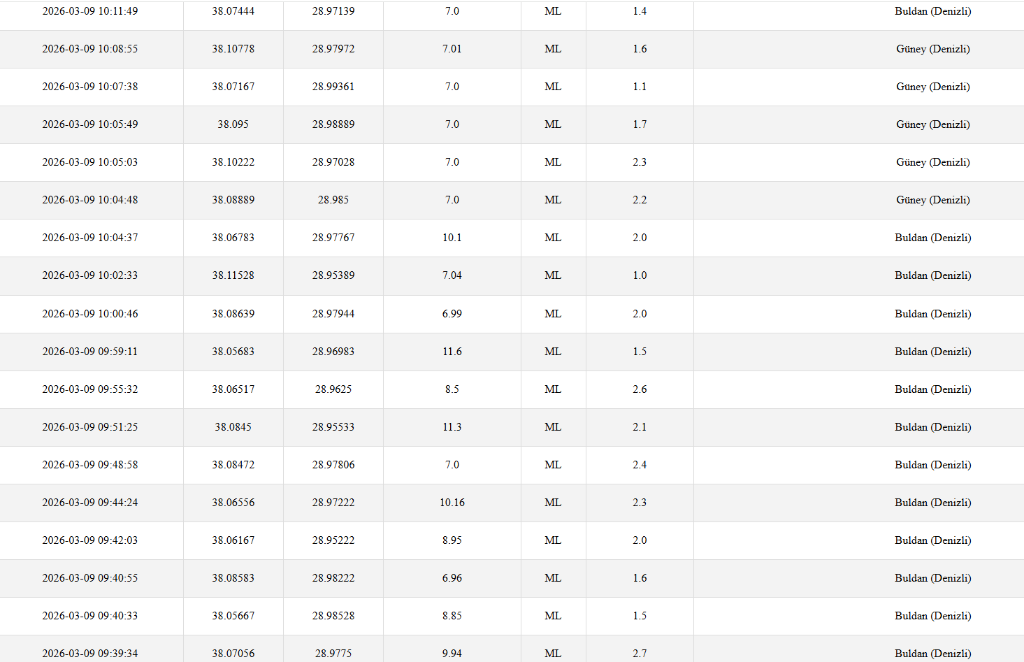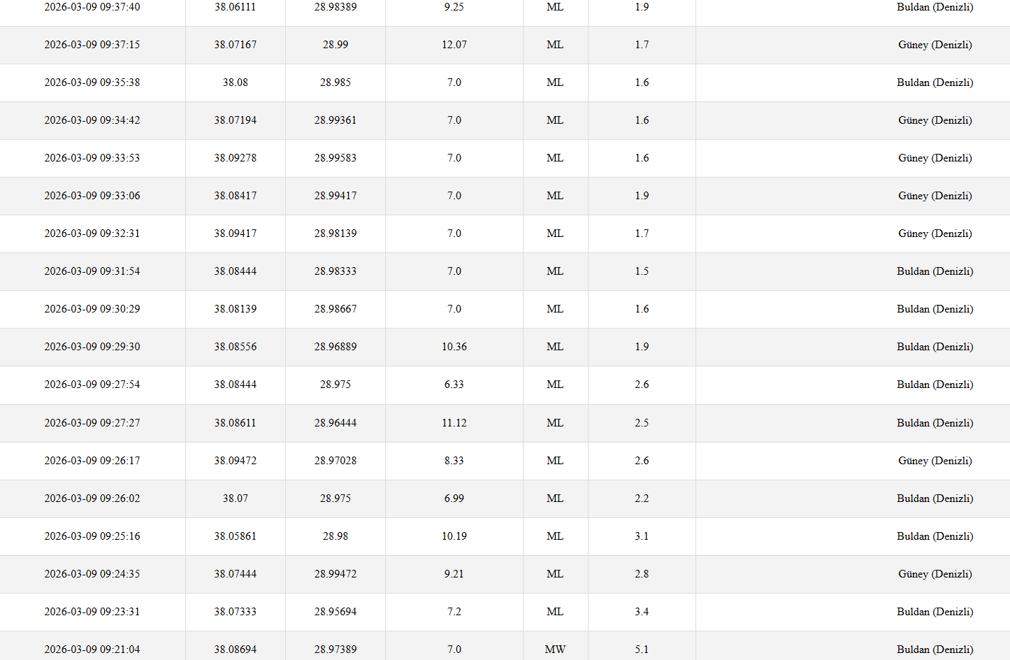 Sabah saatlerinde Denizli'nin Buldan ilçesinde meydana gelen depremin detaylarını, Afet ve Acil Durum Yönetimi Başkanlığı (AFAD) duyurdu. Denizli'de meydana gelen depremin büyüklüğüne ilişkin AFAD, bir paylaşım yaptı. AFAD’ın verilerine göre, Denizli'nin Buldan ilçesinde, saat 09.21'de 5.1 büyüklüğünde bir deprem meydana geldi. Depremin derinliği 7 kilometre olarak kaydedildi.
