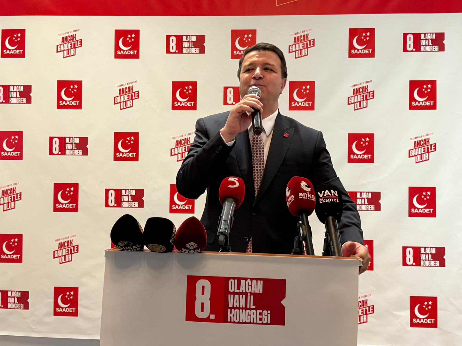 Saadet Partisi Van 8. Olağan İl Kongresi, geniş bir katılımla gerçekleştirildi. Kongrede konuşan Saadet Partisi Genel Başkanı Mahmut Arıkan, “Terörsüz Türkiye” sürecine ve bu kapsamda TBMM’de kurulan Milli Dayanışma, Kardeşlik ve Demokrasi Komisyonuna dair önemli değerlendirmelerde bulundu.
