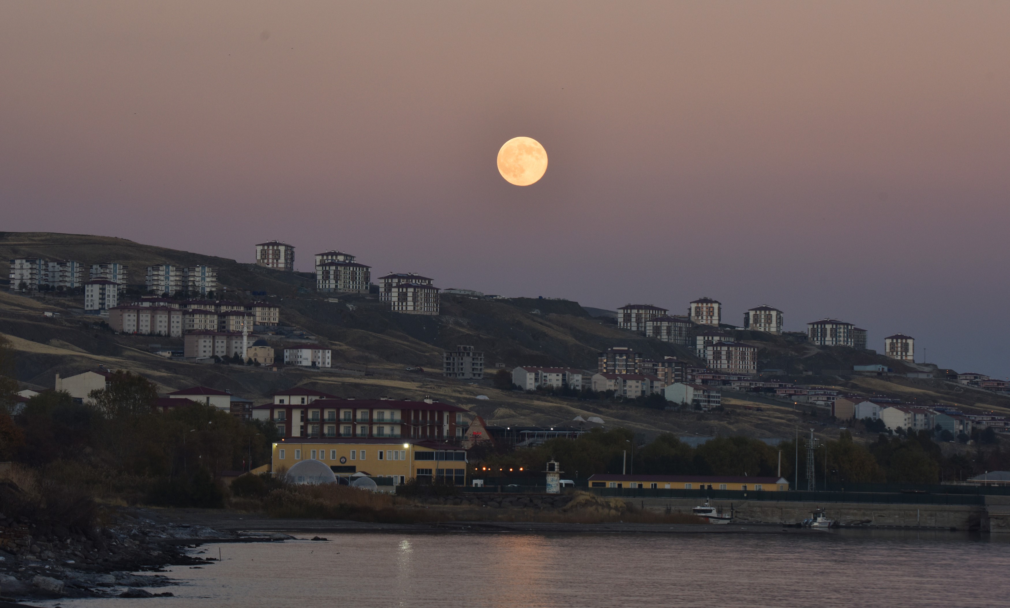 "Kunduz Süper Ay" görsel şölen oluşturdu... Dünya’ya en yakın gerçekleşen dolunay olarak kayıtlara geçen "Kunduz Süper Ay", Ahlat iskelesinde de doğa fotoğrafçıları Özkan Olcay ve Şahin Şerefoğlu tarafından kayda alındı.