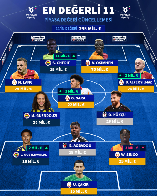 İşte Süper Lig’in en değerli ilk 11’indeki futbolcular;