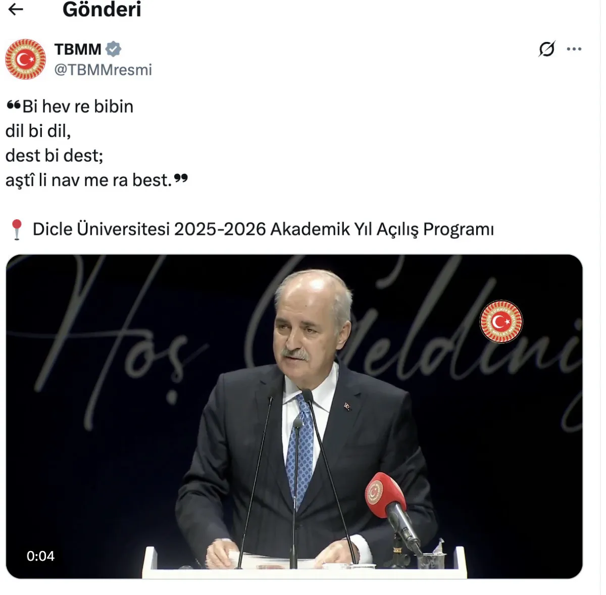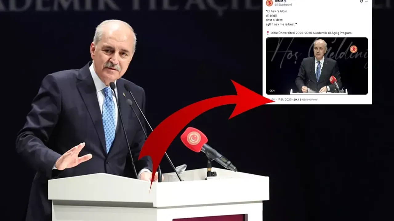 Numan Kurtulmuş'un Kürtçe söylediği sözler, TBMM'nin resmi X hesabı üzerinden paylaşıldı.