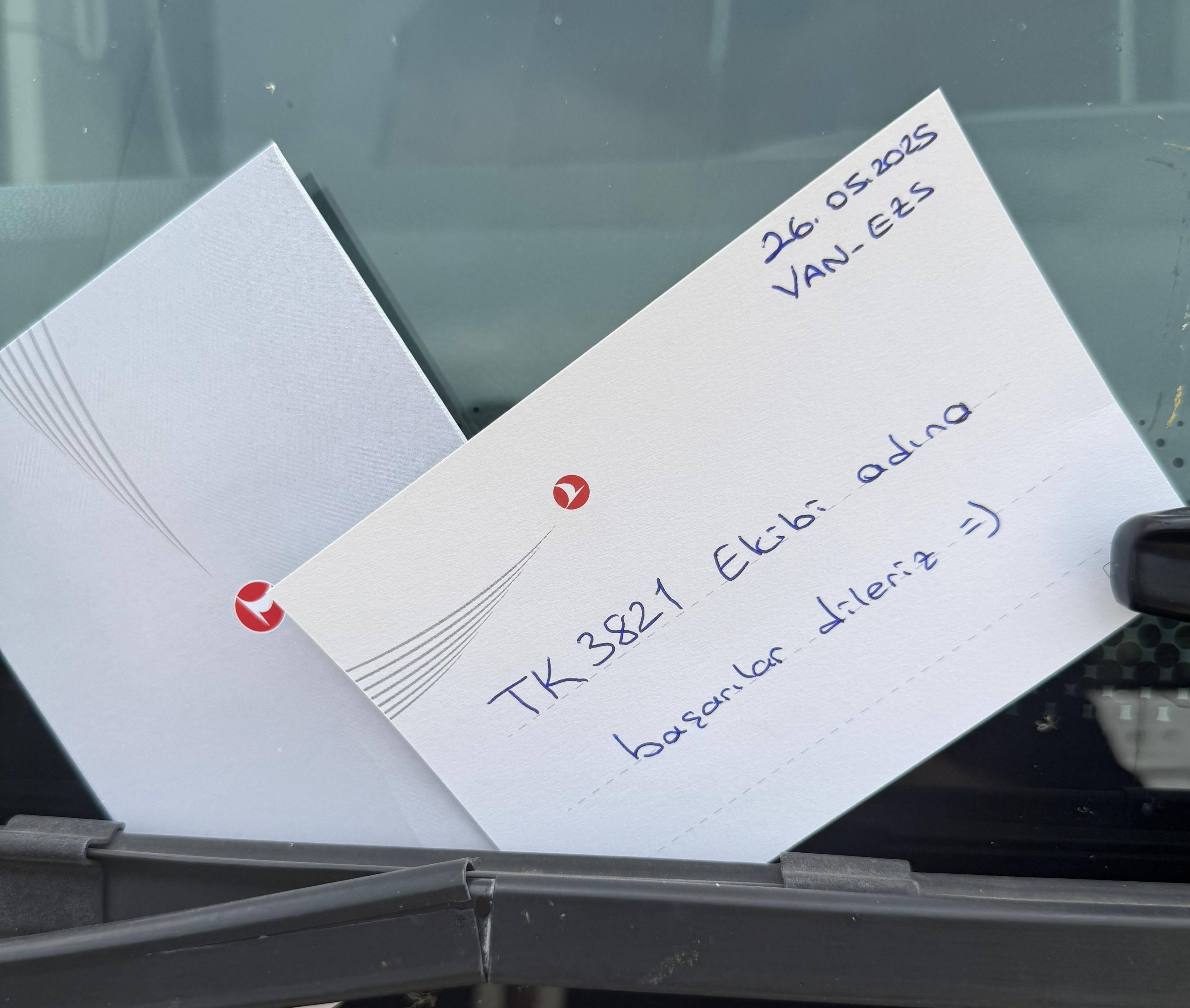 Anlamlı destek, kafilede yer alan futbolcular ve teknik ekip tarafından memnuniyetle karşılandı. Öte yandan Vanspor’un takım otobüsüne de “TK3821 adına başarılar dileriz” notunun bırakıldı.