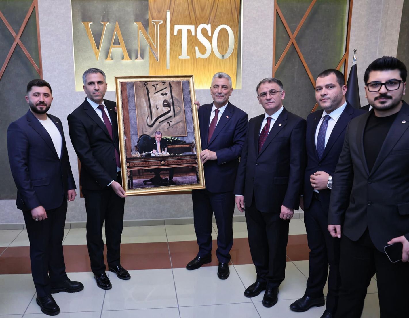 Ziyaretin en dikkat çeken anlarından biri ise ASKON heyeti tarafından gerçekleştirilen hediye takdimi oldu. Van Valisi Ozan Balcı’nın da katılımıyla gerçekleşen görüşmede; ASKON Van Şube Başkanı Osman Çiçekel, Şube Başkan Vekili Ali Vefa Tekin, Şube İl Sekreteri Muhammed Hüseyin İkbal Bilgin ve İl Yönetim Kurulu Üyesi Furkan Solmaz, Bakan Bolat’a özel bir tablo sundu.