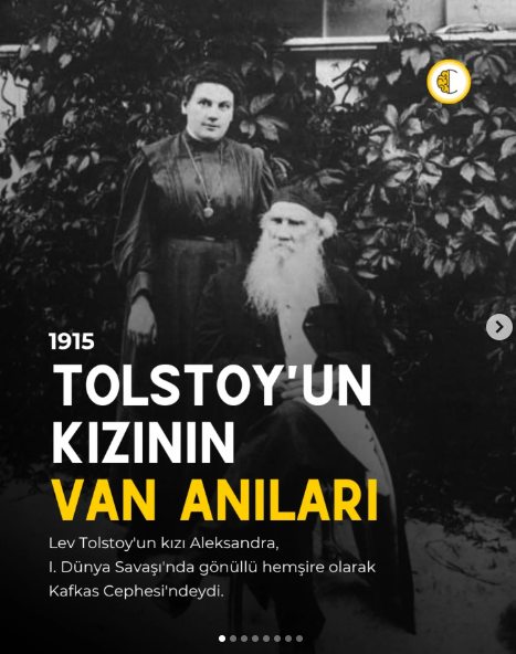 Ceviiz adlı hesaptan yapılan paylaşımda o hatıralardan bazıları okuyuculara sunuldu. “Tolstoy'un kızı 1915'te Van'daydı.” Başlıklı paylaşımda Tolstoy’un kızının gönüllü hemşire olarak Kafkas Cephesi'ne gittiği, oradan Van'a gönderildiği şeklindeki bilgiler paylaşıldı.