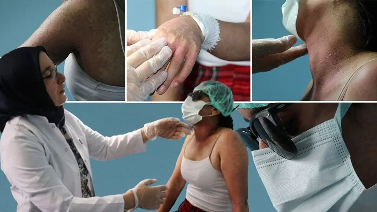 Prof. Dr. Özkol, "Lekeden kurtulayım derken daha ciddi lekelerle karşılaşılıyor. Hastanın özellikle boyun ve kollarındaki yaralarından kaynaklı iz kalabilir. Şu an nemlendirici ve koruyucu kremlerle tedavi uyguluyoruz. Tüm halkımız bilsin ki; özellikle yurt dışından getirilen kremleri lütfen yüzünüze sürmeyin. İçeriğine baktık; yoğun miktarda kojik asit içeriyor. Bu kojik asit de yüz yakıcı, kezzap gibi bir ürün. Lütfen menşei belli olmayan kremleri kullanmayın ve yüzünüze sürmeyin. Hasta ilk geldiğinde nefes darlığı, yoğun halsizlik, konuşama zorluğu vardı. Yüzü kezzap dökülmüş gibiydi. Ciddi anlamda hayati tehlikeye sokacak kadar kötüydü. Şu an durumu iyi, 15 gündür takip ediyoruz. Özellikle bu durumun kamuoyu tarafından bilinmesini istedik. Lütfen dikkat edelim. Bir leke uğruna hayatınızı kaybetmeyin" diye konuştu.