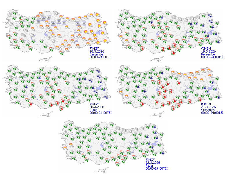 Meteorolojiden yapılan son hava tahminlerine göre: Ülkemizin batı kesimlerinin genelinin parçalı ve yer yer çok bulutlu olması beklenirken Marmara (Edirne ve Çanakkale hariç), Ege, Akdeniz, İç Anadolu'nun güney ve doğusu ile Düzce, Zonguldak ve Bolu çevrelerinin yağmur ve sağanak yağışlı geçeceği tahmin ediliyor. Marmara’da kuzey ve kuzeydoğu yönlerden kuvvetli rüzgarın esmesi bekleniyor. Sabah ve gece saatlerinde kuzey ve doğu bölgelerde buzlanma ve don olayı ile birlikte sis ve pus hadisesi tahmin ediliyor.