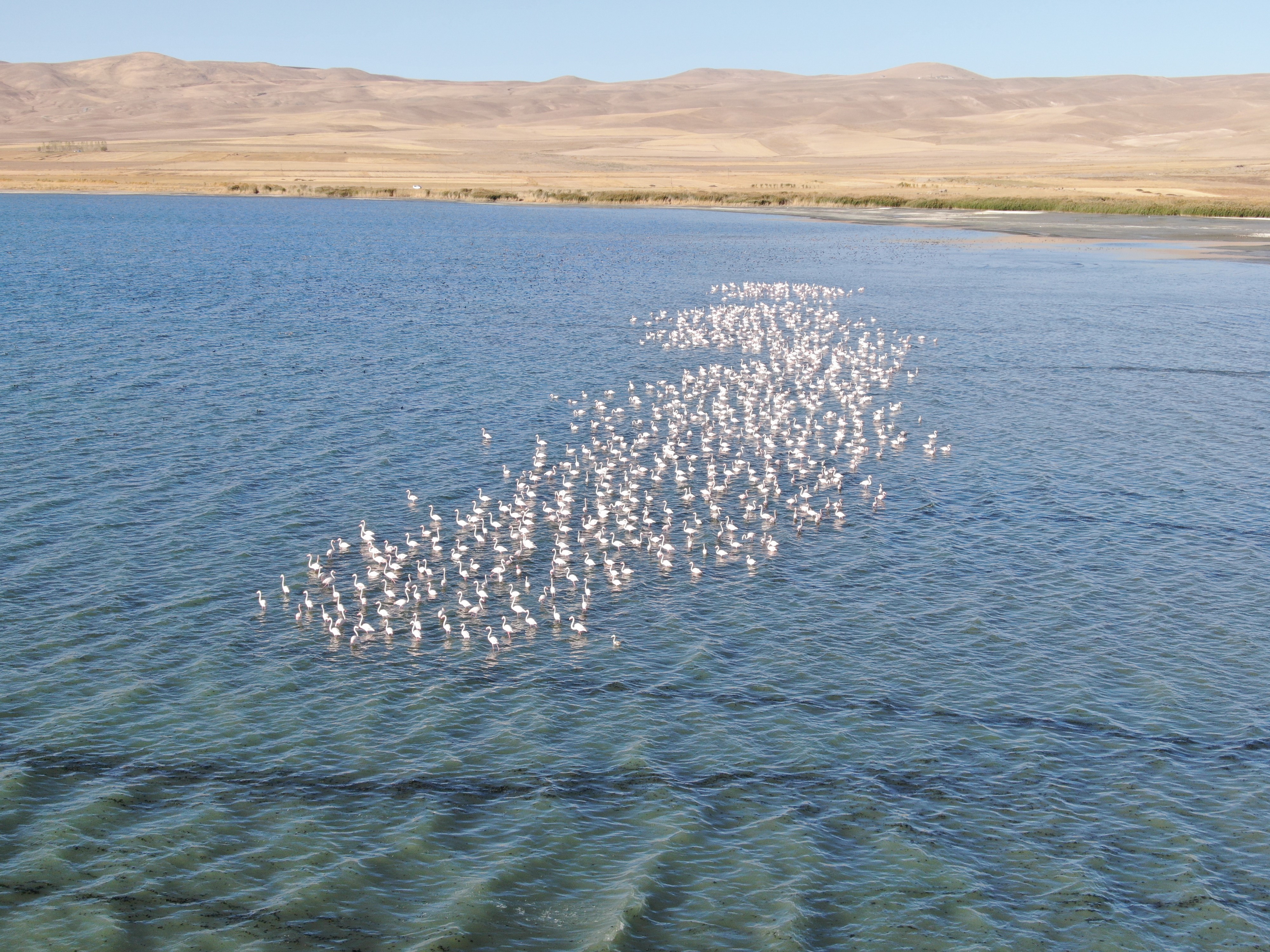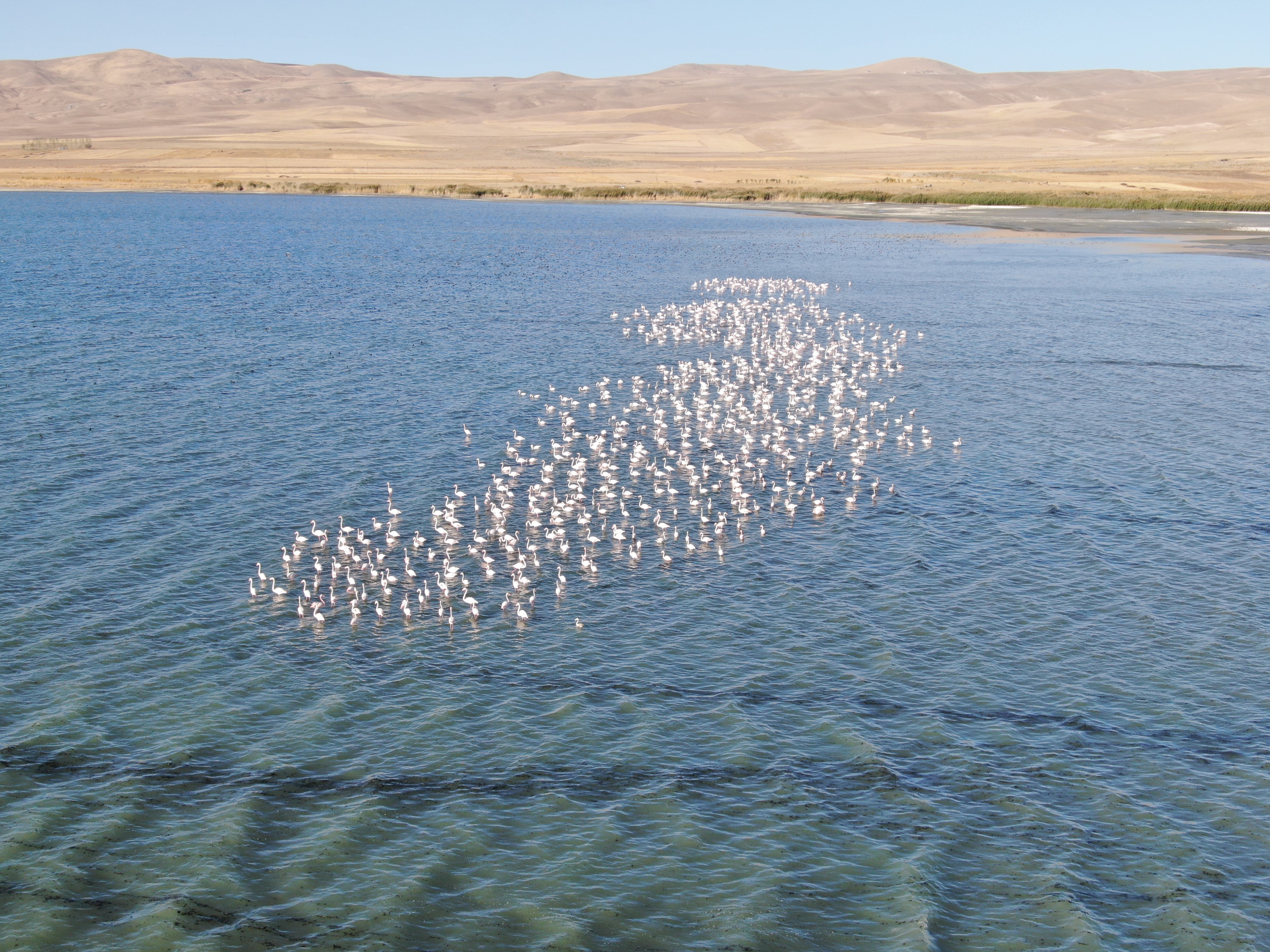 Türkiye'nin en önemli sulak alanlarından biri olan Van Gölü havzası, her yıl olduğu gibi bu yıl da göç yolculuğundaki binlerce flamingoya ev sahipliği yapıyor.