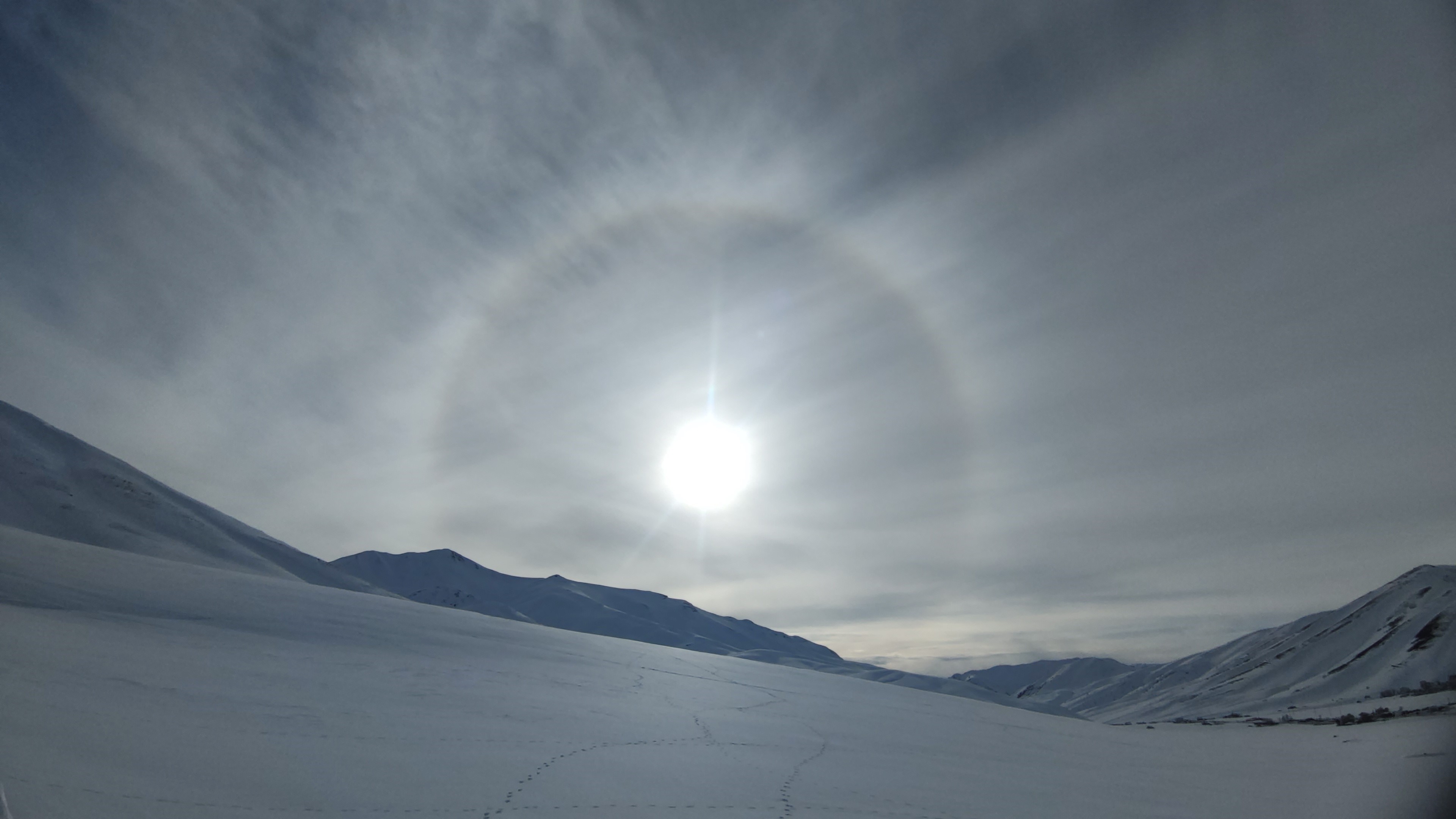 Van'da gökyüzünde oluşan ve güneşin etrafını saran hale, görenleri hayran bıraktı. Öğlen saatlerinden itibaren etkisini gösteren doğa olayı, kent merkezinde ve çevre ilçelerde net bir şekilde gözlemlendi.