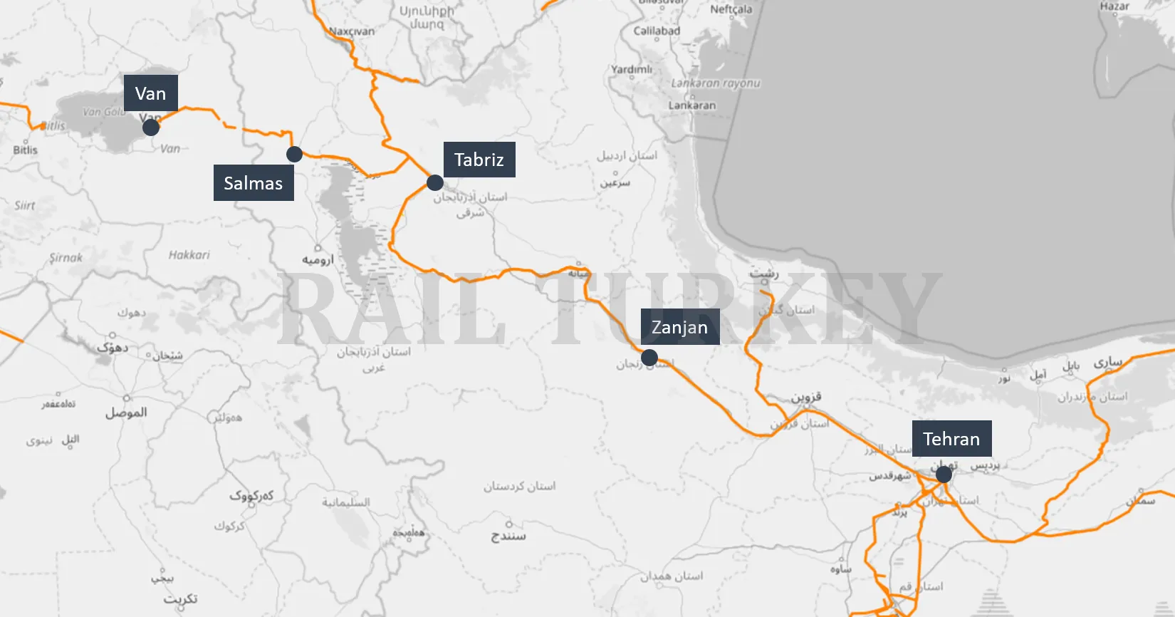 Van’dan Tahran’a uzanan hatta haftanın iki günü karşılıklı seferler yapacak olan tren yol güzergahında Van’dan başlayarak Özalp ve Saray ilçelerini geçecek. Ardından Kapıköy’de bulunan sınır kapısını de geçerek İran tarafında ise sırasıyla Razi, Salmas, Tebriz, Zanjan kentlerinden geçecek. Tren son olarak da Tahran kentine ulaşacak.