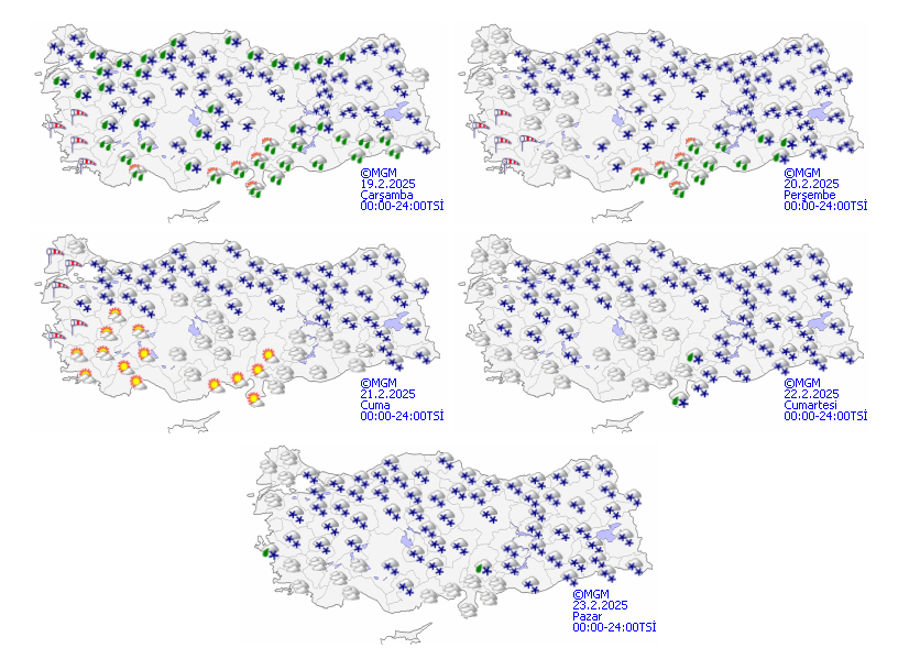 Meteorolojiden edinilen son meteorolojik değerlendirmelere göre; Ülkemiz genelinin parçalı ve çok bulutlu, Marmara(Çanakkale hariç), İç Ege, Orta ve Doğu Akdeniz, İç Anadolu, Karadeniz, Doğu ve Güneydoğu Anadolu ile Isparta çevrelerinin aralıklı yağışlı geçeceği tahmin ediliyor. Yağışların Orta ve Doğu Akdeniz, Güneydoğu Anadolu ile akşam saatlerine kadar Orta ve Doğu Karadeniz kıyılarında yağmur ve sağanak, yağış alan diğer yerlerde karla karışık yağmur ve kar şeklinde olması bekleniyor. Yağışların Doğu Karadeniz, Doğu Anadolu'nun batısı ile Kırklareli, Adana'nın güneyi, Hatay, Muş'un batı kesimleri, Ardahan, Kars ve Erzurum çevrelerinde kuvvetli olacağı tahmin ediliyor. Ülkemizin kuzey, iç ve doğu kesimlerde buzlanma ve don olayı bekleniyor. Doğu Karadeniz’in iç kesimlerinin yüksekleri ile Doğu Anadolu’nun yüksek ve dik yamaçlarında çığ tehlikesi bulunmaktadır. Hava sıcaklığının, kuzey ve iç kesimlerde 3 ila 5 derece azalacağı, diğer yerlerde önemli bir değişikliğin olmayacağı tahmin edilirken rüzgarın genellikle güneyli, zamanla yurdun batı kesimlerinde kuzeyli yönlerden, hafif, ara sıra orta kuvvette, Marmara, Kuzey Ege kıyıları ile gece saatlerinde Batı Akdeniz'in iç kesimlerinde kuzey ve kuzeydoğu yönlerden kuvvetli ve kısa süreli fırtına (40-70 km/saat) şeklinde esmesi bekleniyor.