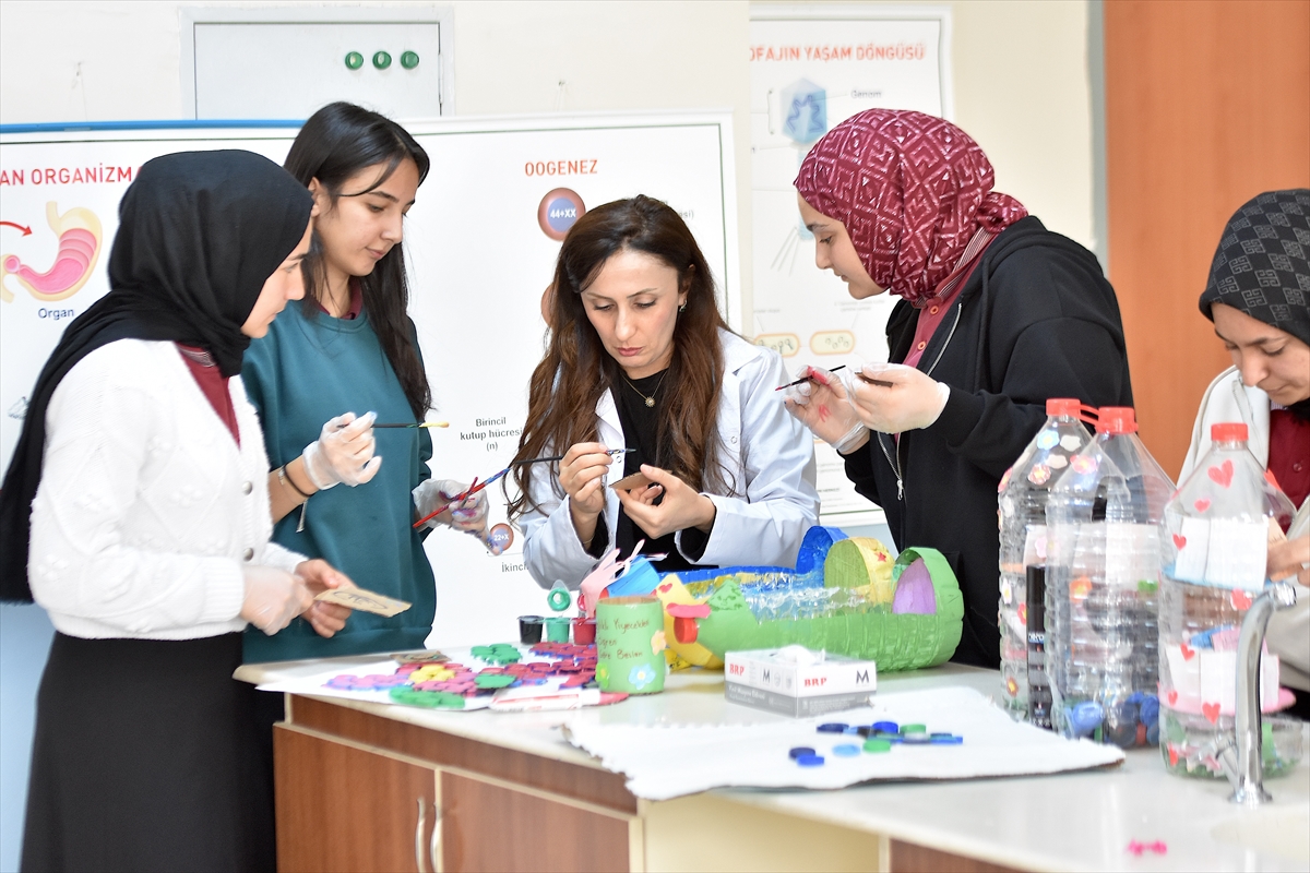 Biyoloji öğretmeni Saniye Kurt, temiz ve sürdürülebilir bir çevre için farkındalık oluşturmaya çalıştıklarını söyledi. Çalışmaları 18 öğrenciyle yürüttüğünü belirten Kurt, "Okulda pansiyon ve yemekhane var, bundan dolayı çok atık madde açığa çıkıyor. Okulumuzda geri dönüşüm kutularını yapmaya karar verdik. Okulda bir farkındalık oluşturmaya başlayınca öğrenci sayımız da arttı. Sahipsiz kedi, köpekler için atık malzemelerden evler, suluklar ve yemlikler yaptık." dedi.