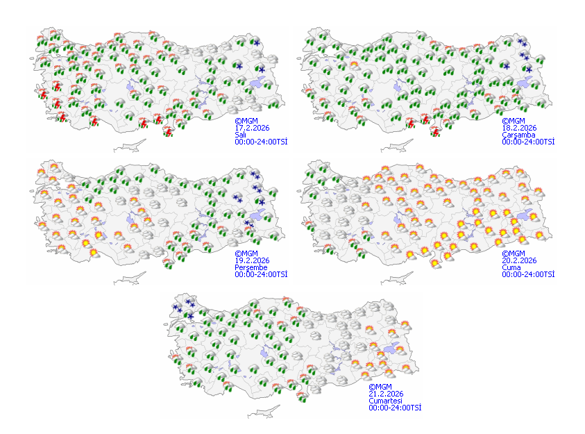 Meteorolojiden yapılan değerlendirmelere göre: Ülke genelinde havanın parçalı ve çok bulutlu olması beklenirken Marmara, Ege, Akdeniz, İç Anadolu, Batı Karadeniz, Orta ve Doğu Karadeniz’in iç kesimleri, Kars ve Iğdır dışında Doğu Anadolu bölge geneli, Güneydoğu Anadolu’nun kuzey ve batısı ile sabah saatlerinde Samsun çevrelerinin aralıklı yağmur ve sağanak, Kıyı Ege ile Akdeniz kıyılarının yer yer gök gürültülü sağanak, akşam saatlerinden sonra Doğu Anadolu'nun kuzeydoğusunun karla karışık yağmur ve yükseklerinin yer yer kar yağışlı geçeceği tahmin ediliyor.