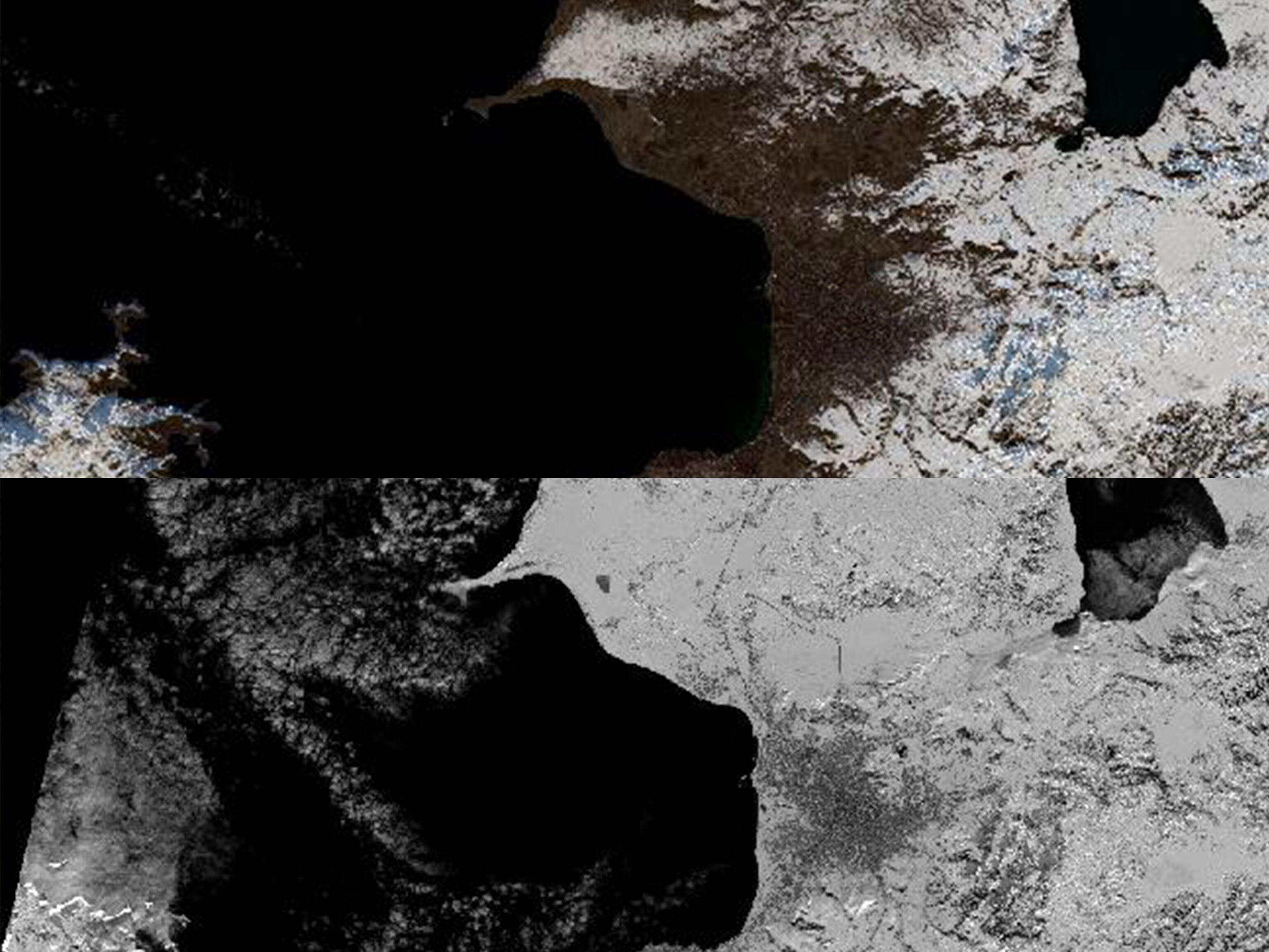 Van Gölü Havzası'nda bu yıl etkili olan kar yağışı, uydu verilerine de yansıdı. Van Gölü çevresindeki kar örtüsünü gösteren Sentinel-2 uydu görüntülerini inceleyen uzmanlar, 2026 yılı şubat ayının ilk haftasında havzanın büyük bölümünün karla kaplı olduğunu belirledi. Geçtiğimiz yılın aynı dönemine ait görüntülerle yapılan karşılaştırmada, kar örtüsünün bazı bölgelerde yüzde 60'ın üzerinde arttığı tespit edildi.