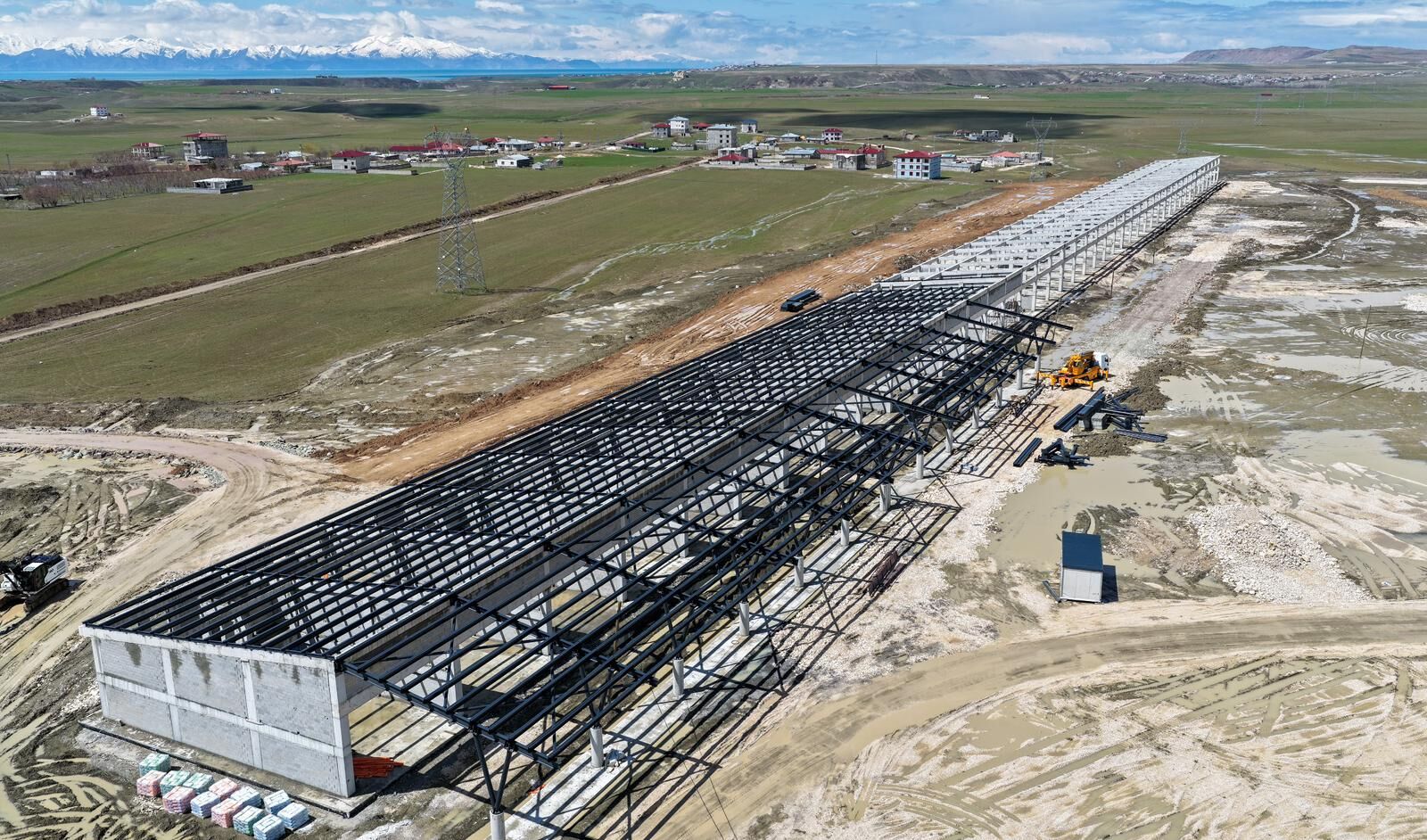 Van’da önemli projeler hayata geçirilmeye devam ediliyor… Van Büyükşehir Belediyesi'nin, Van-Erciş karayolu üzeri çevre yolu bağlantı noktasında yapımını sürdürdüğü yeni sebze ve meyve hali projesinde fiziki gerçekleşme oranı yüzde 50'yi buldu.