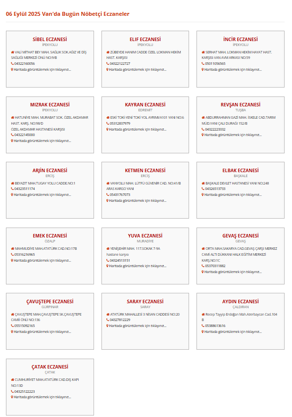 Her gün nöbetçi eczaneleri Vanlılar için bildiren Van Eczacı Odası, 6 Eylül Cumartesi için de bir liste yayınladı. İşte nöbetçi olan eczaneler...