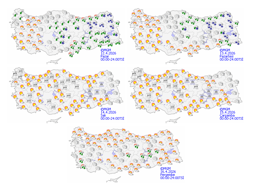 Çok bulutlu ve aralıklı kar yağışlı geçeceği tahmin ediliyor. Yağışların; yerel kuvvetli olması bekleniyor.