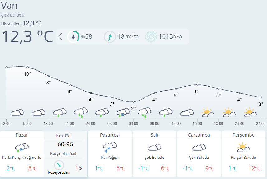 Van İpekyolu, Tuşba: Çok bulutlu, öğle saatlerine kadar aralıklı yağmur ve karla karışık yağmurlu
