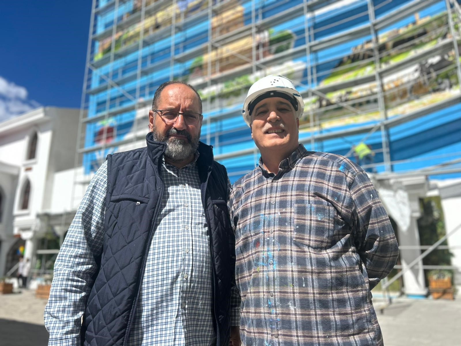 Resim Öğretmeni Mustafa Çalağan, bütün ressamların en büyük hayalinin büyük ölçekli resimler yapmak olduğunu belirtti. Van'da ilk olarak Kent Meydanı'nda çalışma fırsatı bulduklarını hatırlatan Çalağan, "Bu da diyebilirim ki bizim ikinci büyük ölçekli işimizdir. Şu an 20 metre yüksekliğinde, 25 metre eninde, yaklaşık 800 metrekarelik bir yapıya resim yapıyoruz. Bu bize büyük bir heyecan veriyor" dedi.