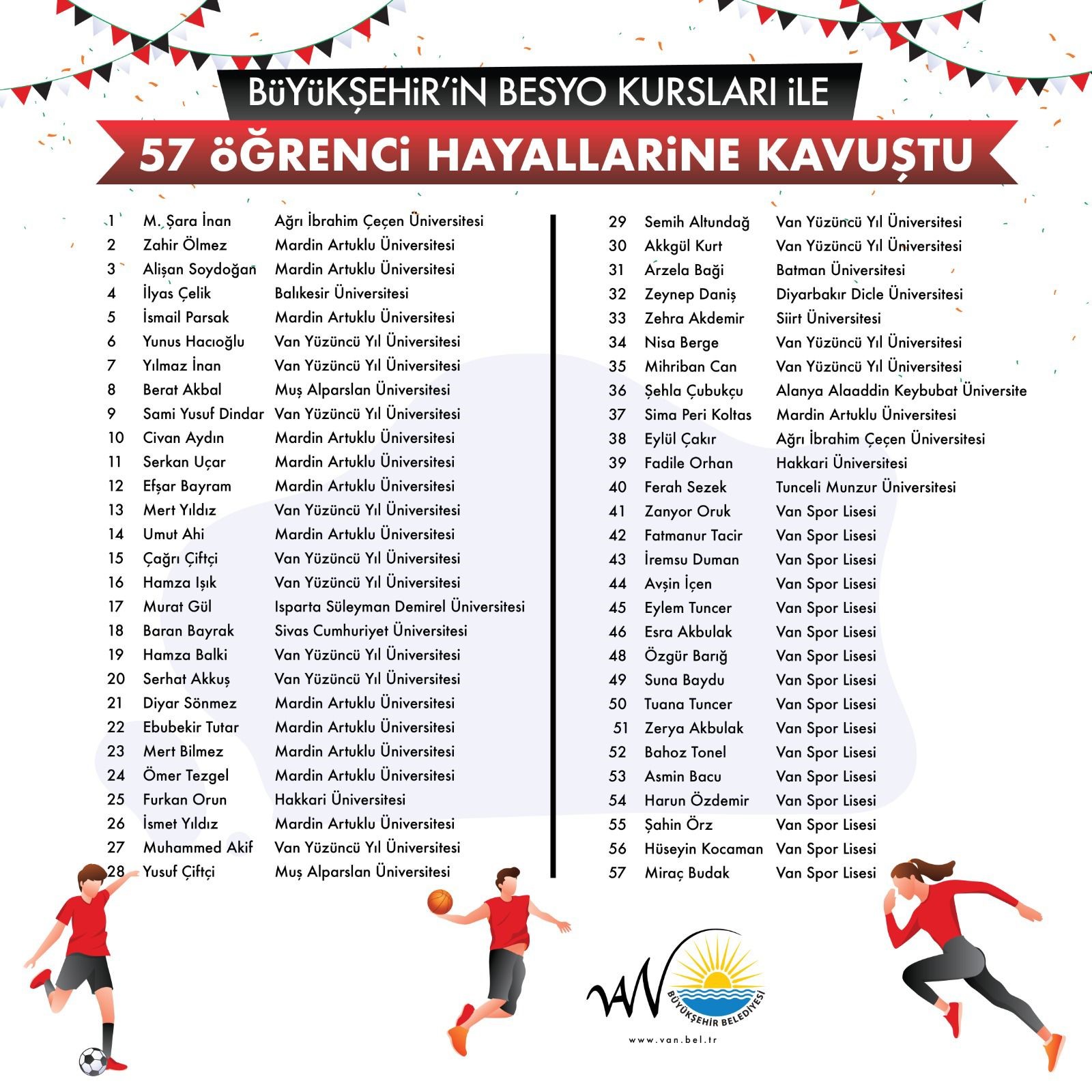 Van Büyükşehir Belediyespor Kulübü bünyesinde görevli deneyimli antrenörler tarafından verilen kurslarda, öğrenciler hem spor salonlarında hem de açık alanlarda düzenli antrenman programlarına tabi tutuldu. Yaklaşık altı ay süren yoğun hazırlık sürecinin ardından kursiyerler, Türkiye genelinde çeşitli üniversitelerin Beden Eğitimi ve Spor Yüksekokulu (BESYO) programlarına yerleşildi.