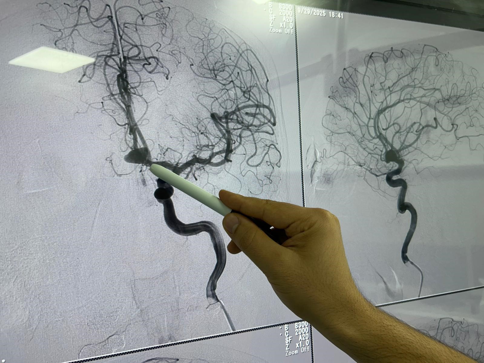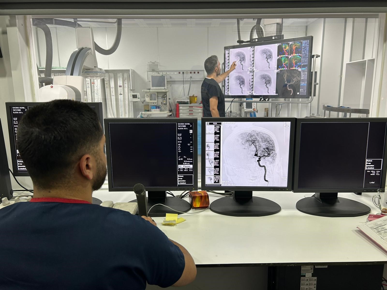 Bitlis Devlet Hastanesi'ne baş ağrısı ve bilinç bulanıklığı şikâyetiyle başvuran hastanın daha sonra kendilerine sevk edildiğini aktaran Girişimsel Radyoloji Uzmanı Dr. Berat Demiral ise "Yapılan tomografi incelemesinde beyin kanaması tespit ediliyor. Ardından çekilen tomografik anjiyoda beyin damarlarında anevrizma (damar baloncuğu) tespit ediliyor. Bunun üzerine hasta, tedavi amacıyla 112 ambulansı ile Van Eğitim ve Araştırma Hastanesi'ne sevk ediliyor. Hastaya ilk olarak anjiyo işlemi yapıldı. Kasıktan girilerek beyin damarlarına özel kateterlerle ulaşıldı ve anevrizmanın endovasküler (kapalı yöntem) tedaviye uygun olduğuna karar verildi. Yaklaşık 1,5 saat süren işlemde, anevrizmanın ağzına mikrokateterle ulaşılarak içine platin teller (coil) yerleştirildi. Bu yöntemle baloncuğun kanla dolması engellendi ve yeniden kanama ihtimali ortadan kaldırıldı" diye konuştu.