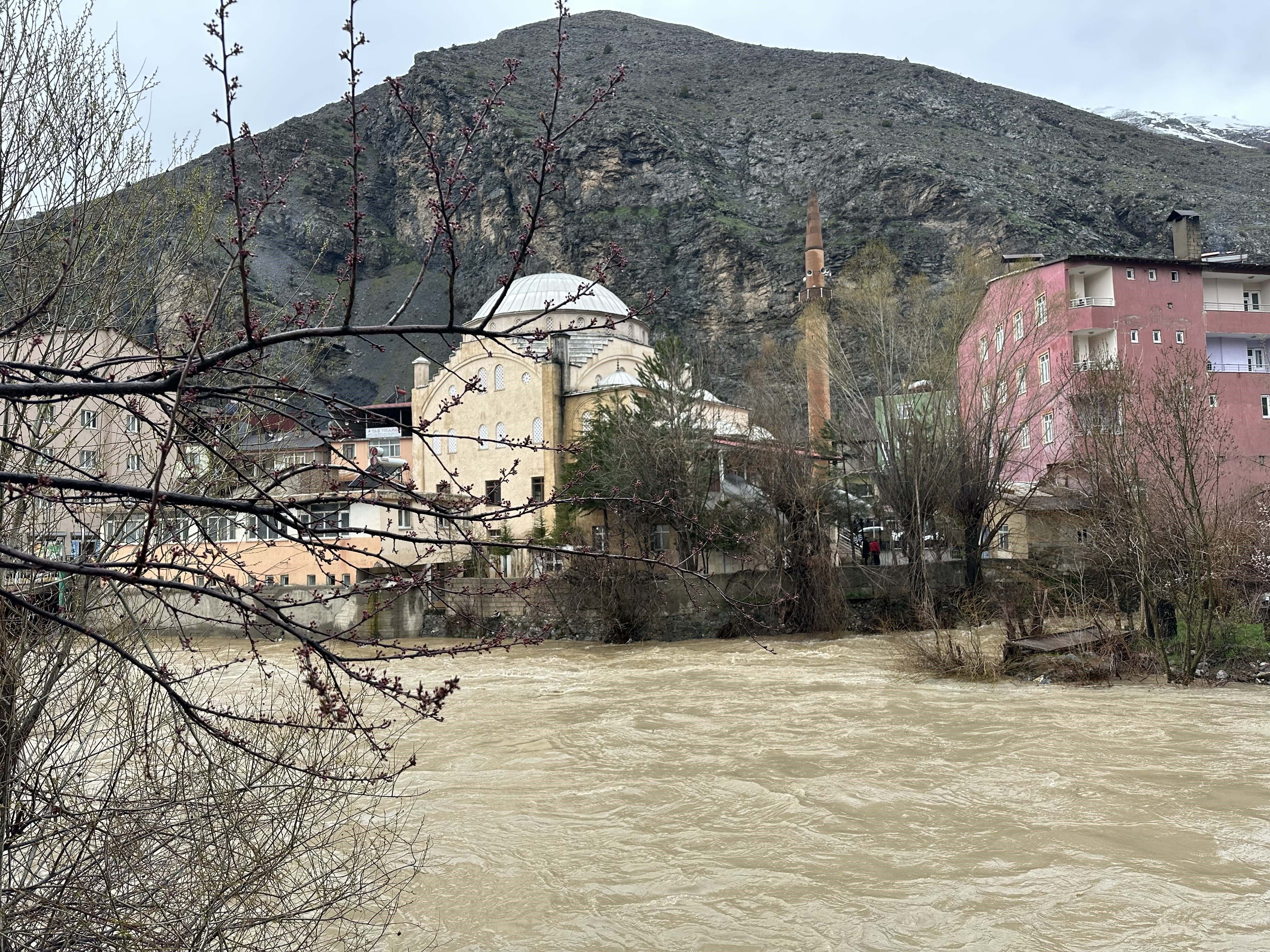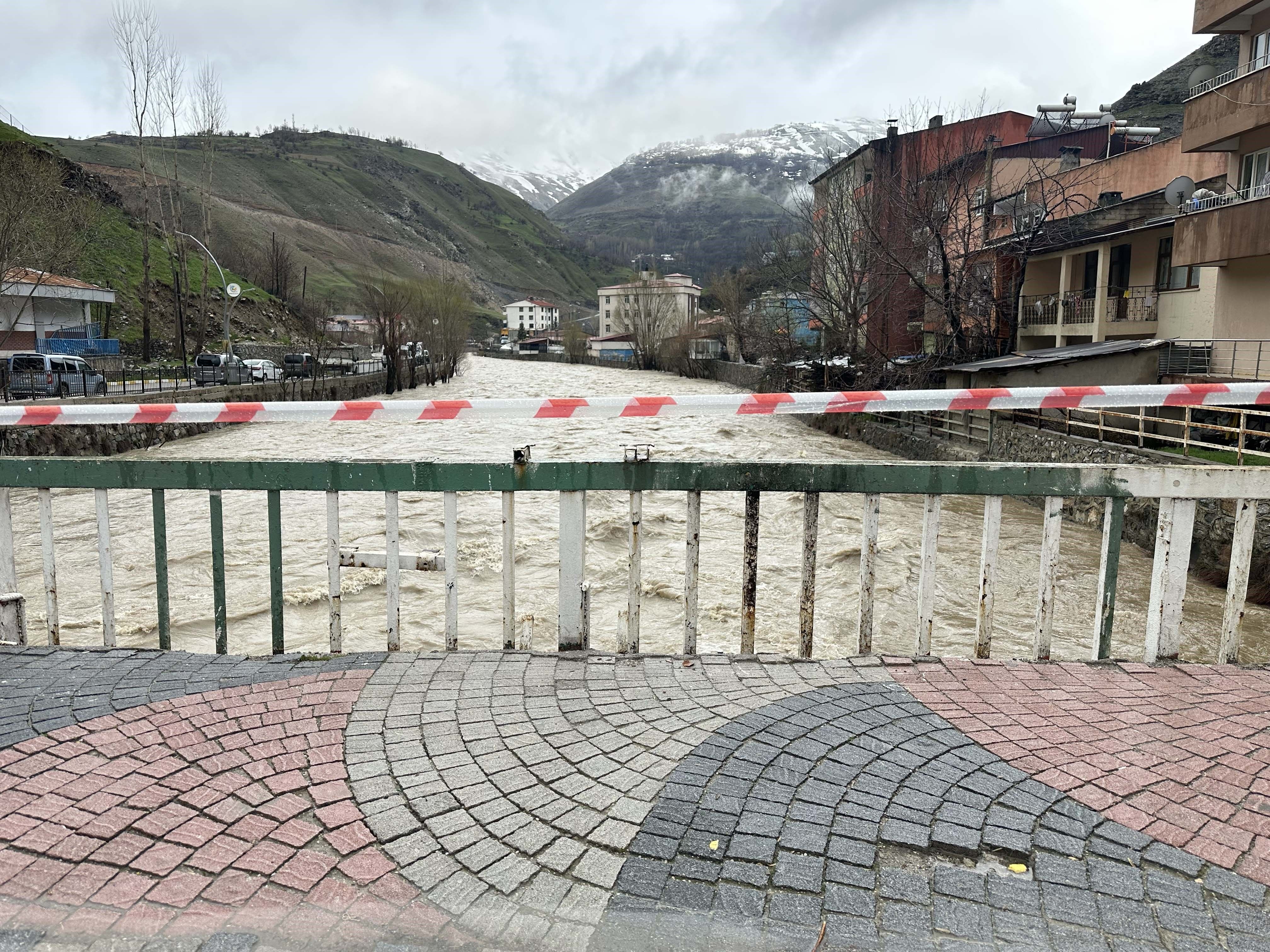 Van'ın Çatak ilçesinde etkili olan yoğun yağışlar ve kar erimeleri nedeniyle debisi yükselen dere üzerindeki köprü ve kafe tedbiren kapatıldı.