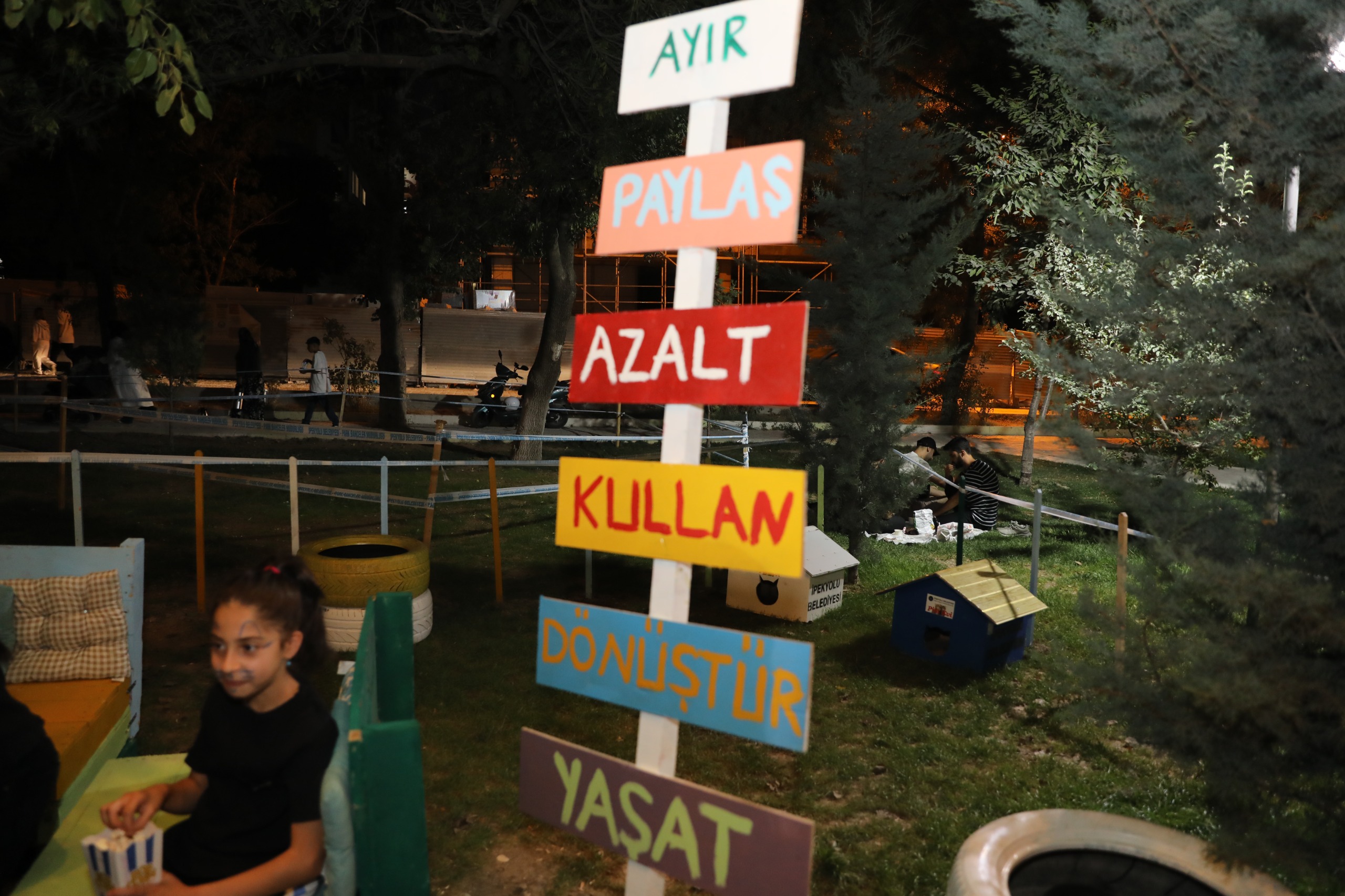 Geri dönüştürülebilir atıklarla üretilen ürünlerin yer aldığı etkinlik, İpekyolu Belediyesi Başkan Yardımcısı Cüneyt Ergün ve meclis üyelerinin katılımıyla başladı. Çocuklar, öncelikle çizgi film gösterimleriyle keyifli anlar yaşadı. Ardından patlamış mısır dağıtıldı ve özel olarak hazırlanan alanlarda rahatça oturabilmeleri sağlandı. İklim Değişikliği ve Sıfır Atık Müdürlüğü’nün seçtiği tanıtım videoları izletildi ve belediye çalışanları tarafından sıfır atık konusunda bilgilendirme konuşmaları yapıldı.