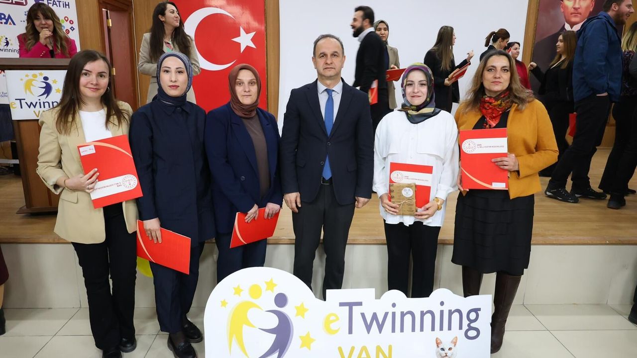 Eğitimde yenilikçi yaklaşımları destekleyen ve uluslararası iş birliklerini teşvik eden eTwinning platformu kapsamında, yürüttükleri projelerle fark yaratan öğretmenler ödüllendirildi. Düzenlenen törende öğretmenler, belgelerini Milli Eğitim Müdür Yardımcısı Harun Kutlu’nun elinden aldı.
