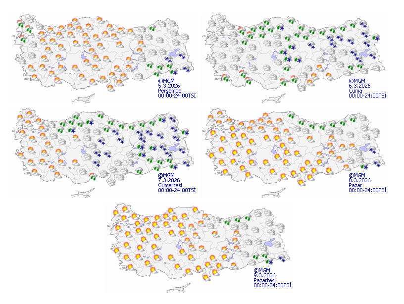 Meteoroloji Genel Müdürlüğü’nün son değerlendirmelerine göre Türkiye genelinde parçalı çok bulutlu, sisli ve puslu bir hava bekleniyor. Sabah saatlerinde Van çevrelerinde hafif kar yağışı görülürken ve kıyı kesimlerde yağmur ve sağanak etkili olacak. 32 ilde sis ve pus hadisesi beklenirken ulaşımda aksamalar ve görüş mesafesinde düşüşler olabileceğinden araç sürücülerinin dikkatli ve tedbirli olmaları konusunda uyarıldı. Doğu Karadeniz ve Doğu Anadolu’nun yüksek kesimleri için çığ tehlikesi uyarısı yapıldı.