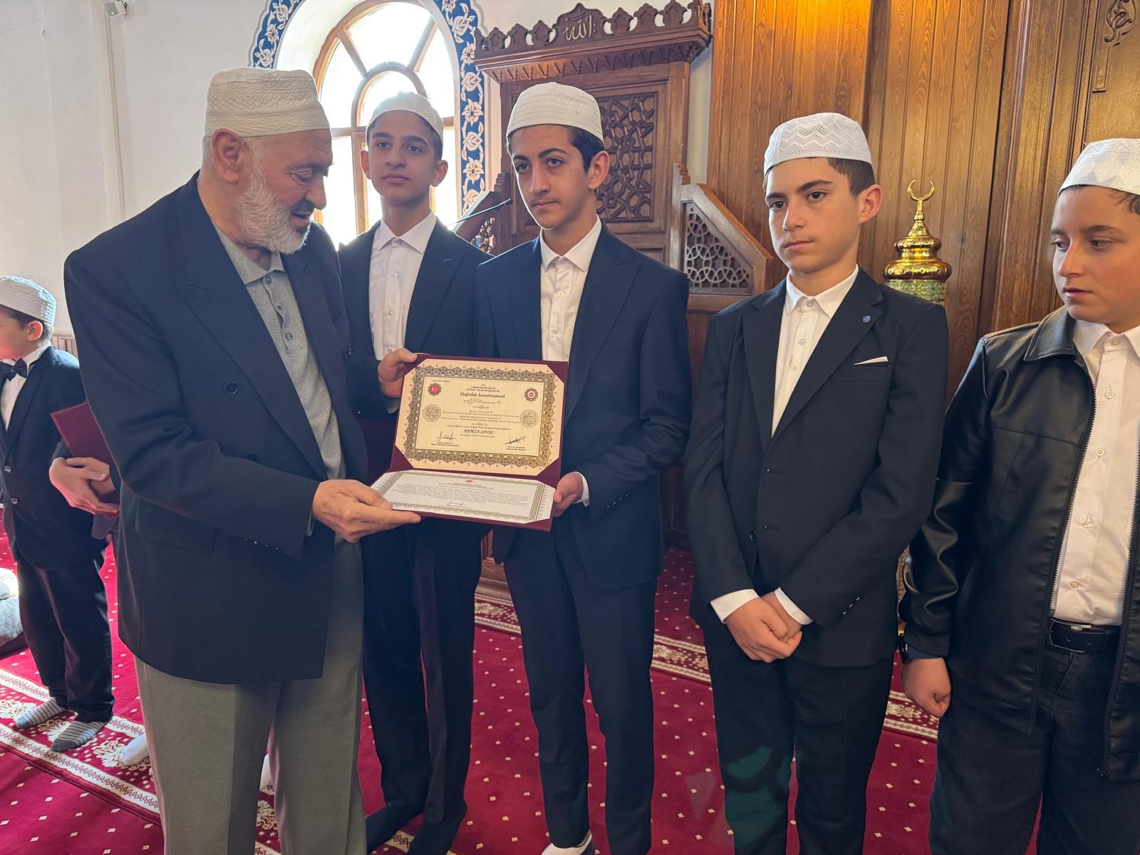Yeni Nurşin Camii altında bulunan Hacı Murat Değer Erkek Öğrenci Kur’an Kursu’nda hafızlık eğitimi alan öğrencilerin başarısı, cami cemaatinin de takdirini topladı. Hafızlık icazet belgelerini alan öğrencilerin yüzlerindeki mutluluk ise görülmeye değerdi.