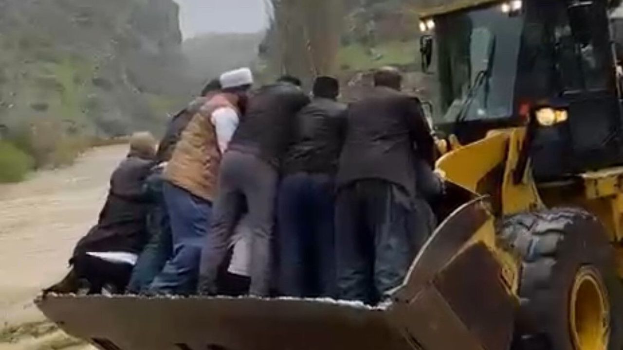 Hakkari'nin Derecik ilçesinde taşkın nedeniyle kapanan yolda mahsur kalan 18 yaşındaki gencin cenazesi, iş makinesi yardımıyla mezraya ulaştırıldı.