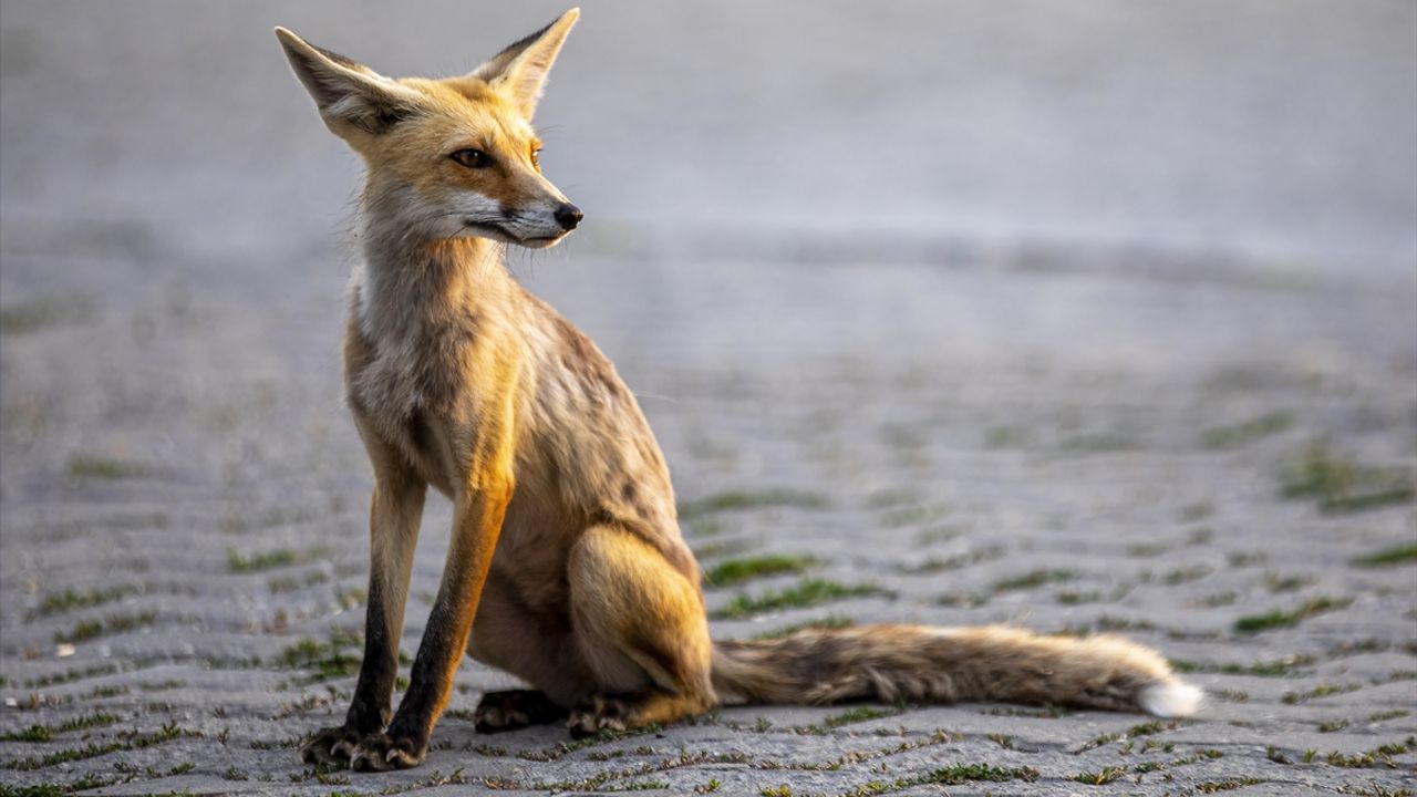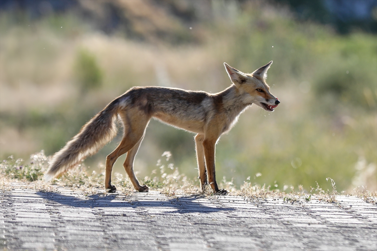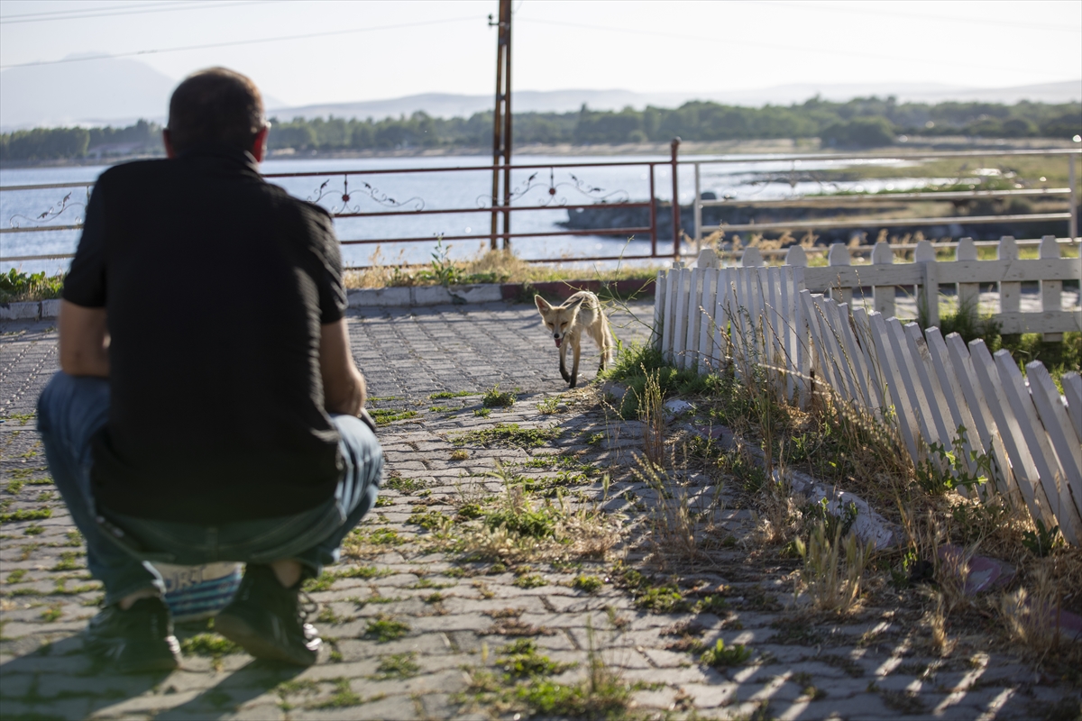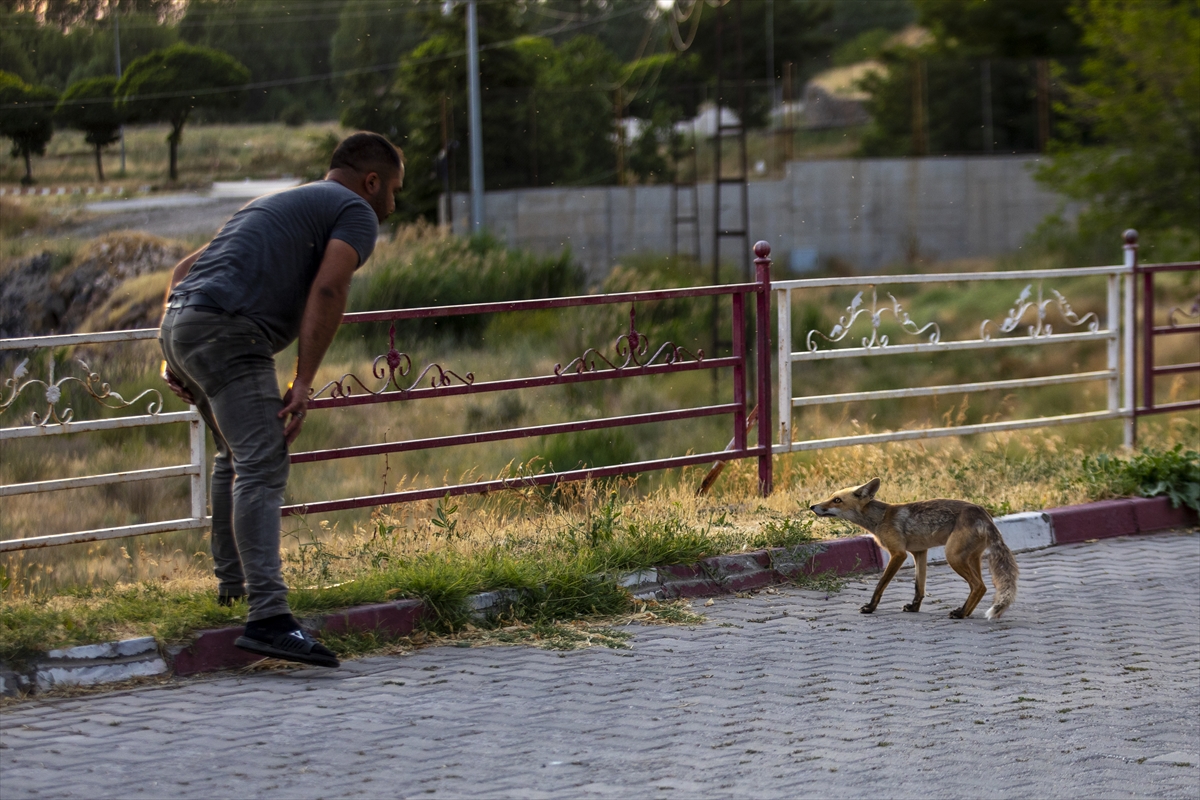 İlçe Emniyet Müdürlüğü'ne ait Sahilkent Mahallesi'ndeki polis lokalinin personeli, her gün lokalin bahçesine gelen tilkiye yiyecek veriyor.